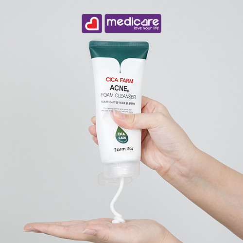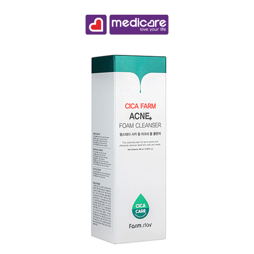Sữa Rửa Mặt FARMSTAY Cica Farm Ngừa Mụn 180ml   THÔNG TIN SẢN PHẨM: • Đơn vị tính và Quy cách đóng gói: Một Tuýp – 180ml. • Nước xuất xứ: sản xuất tại Hàn Quốc.   CÔNG DỤNG: • Sữa rửa mặt dành cho da mụn, giúp làm sạch hiệu quả tế bào chết và bụi bẩn, kiểm soát bã nhờn. • Chiết xuất Centella Asiatica (rau má) giúp làm dịu da. • Phức hợp thảo dược và chiết xuất thực vật cũng giúp giữ cho làn da của bạn khỏe mạnh và hoàn hảo.   HƯỚNG DẪN SỬ DỤNG: • Lấy một lượng vừa đủ ra tay và xoa lên tay để tạo bọt. Nhẹ nhàng massage sản phẩm trên da làm sạch hoàn toàn. Sau đó rửa sạch bằng nước ấm.   LƯU Ý: • Ngừng sử dụng và hỏi ý kiến bác sĩ nếu xuất hiện các triệu chứng như đốm đỏ, ngứa hoặc sưng tấy. • Không sử dụng trên vết thương hở hoặc vùng da bị trầy xước. • Để xa tầm tay trẻ em.     Hướng dẫn bảo quản: Bảo quản nơi khô ráo, nhiệt độ dưới 35°C, tránh tiếp xúc trực tiếp với ánh nắng mặt trời.   • Chỉ sử dụng bên ngoài. • Chúng tôi luôn cố gắng đảm bảo tất cả thông tin về công dụng và hướng dẫn sử dụng của sản phẩm luôn được cập nhật đầy đủ và chính xác trên trang web. • Đọc kỹ thông tin sản phẩm trên bao bì hoặc tờ rơi hướng dẫn đính kèm trước khi dùng và chỉ được sử dụng theo như hướng dẫn.