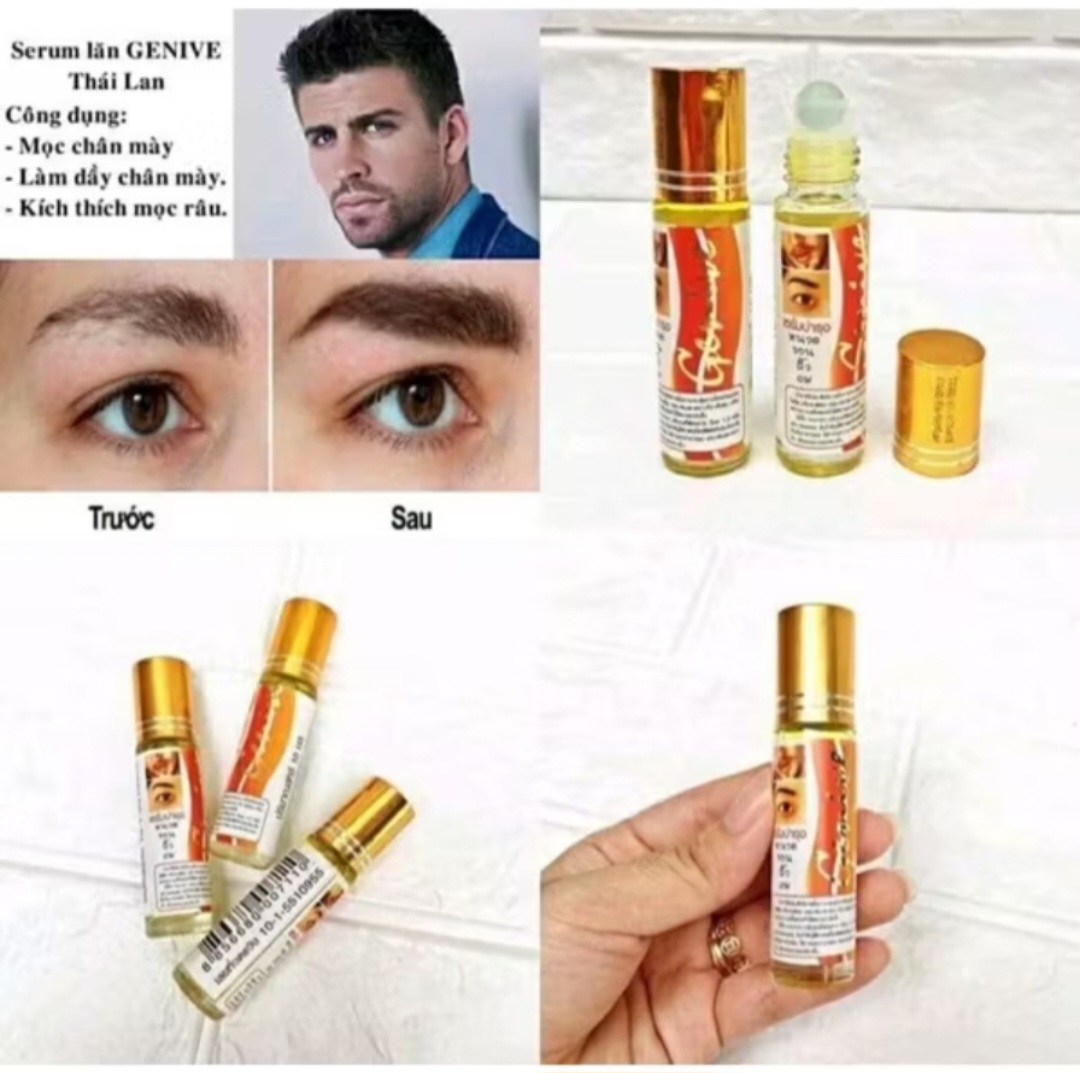 Sử dụng Serum Genevi Thái Lan có tác dụng làm tóc, lông mày, lông mi (thậm chí cả râu) của bạn sẽ trông khỏe mạnh hơn, dày hơn, mang lại vẻ đẹp sắc nét tự nhiên. - Kích thích mi mọc dài và dày, dày chân mày, dài râu (cho nam giới). - Làm dài mi Genevi với thiết kế nhỏ gọn, dạng con lăn dễ sử dụng cho râu, lông mày. - Giúp cải thiện mi ngắn, thưa thớt