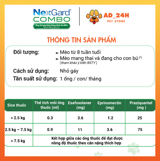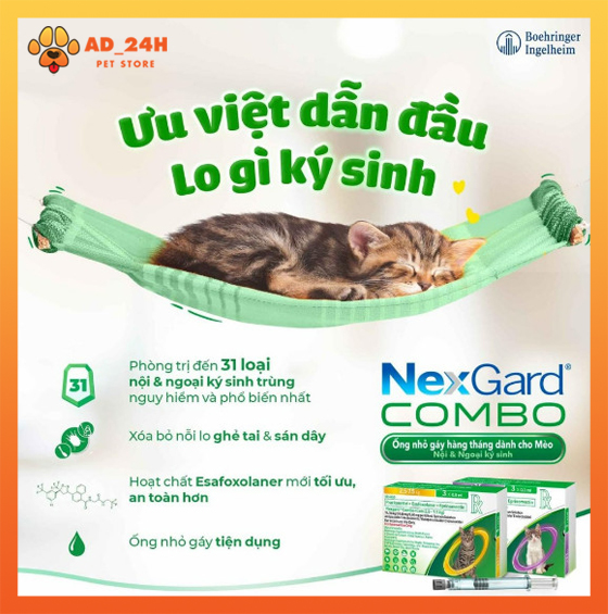 Giá thành là của 1 ống [1 ống] NEXGRAD COMBO CAT -------------------------------------------------------------- Giúp Mèo của bạn luôn sạch sẽ và khoẻ mạnh bởi nó giúp chống lại 31 loại nội ngoại ký sinh trùng.