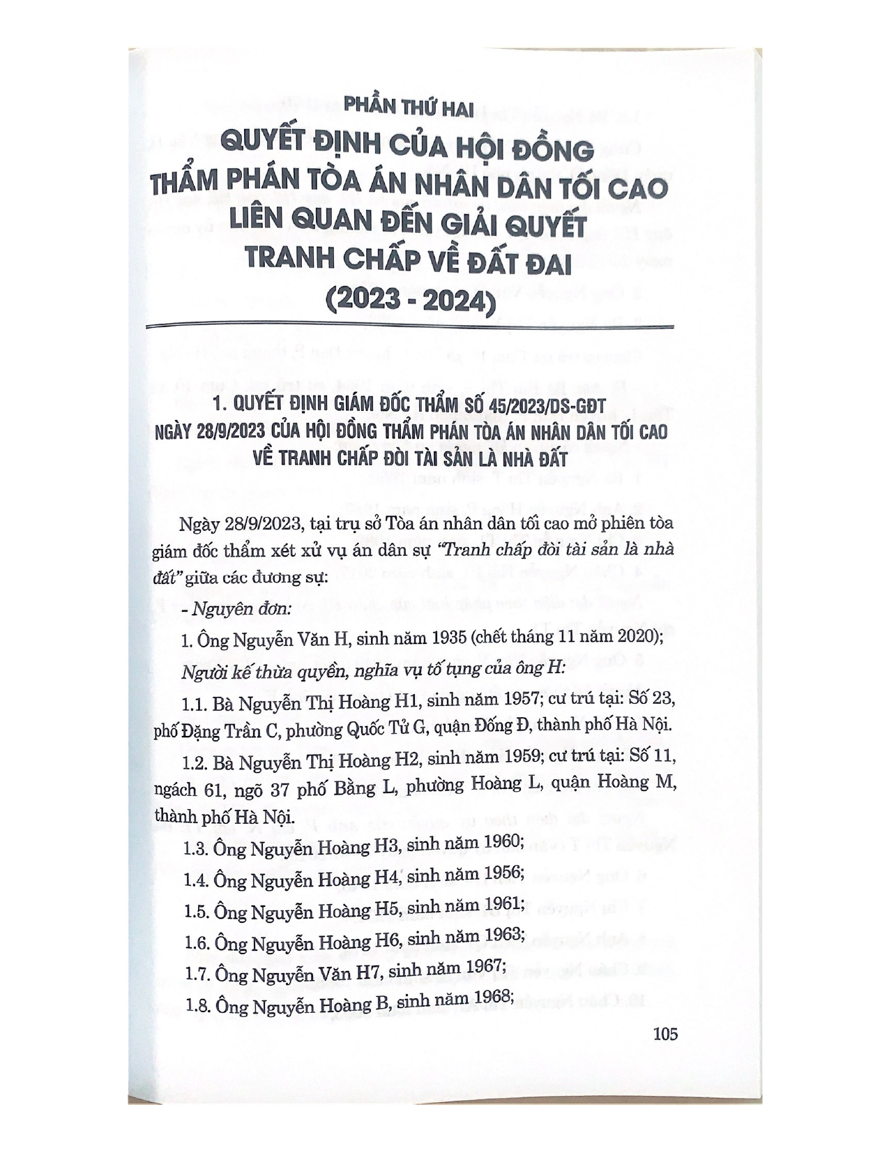 LUẬT ĐẤT ĐAI NĂM 2024 VÀ ÁN LỆ GIẢI QUYẾT VỤ ÁN, VỤ VIỆC VỀ ĐẤT ĐAI TRONG THỰC TIỄN XÉT XỬ (Sách chuyên khảo) Tác giả : PGS.TS Nguyễn Thị Ngọc Hoa (Chủ Biên)