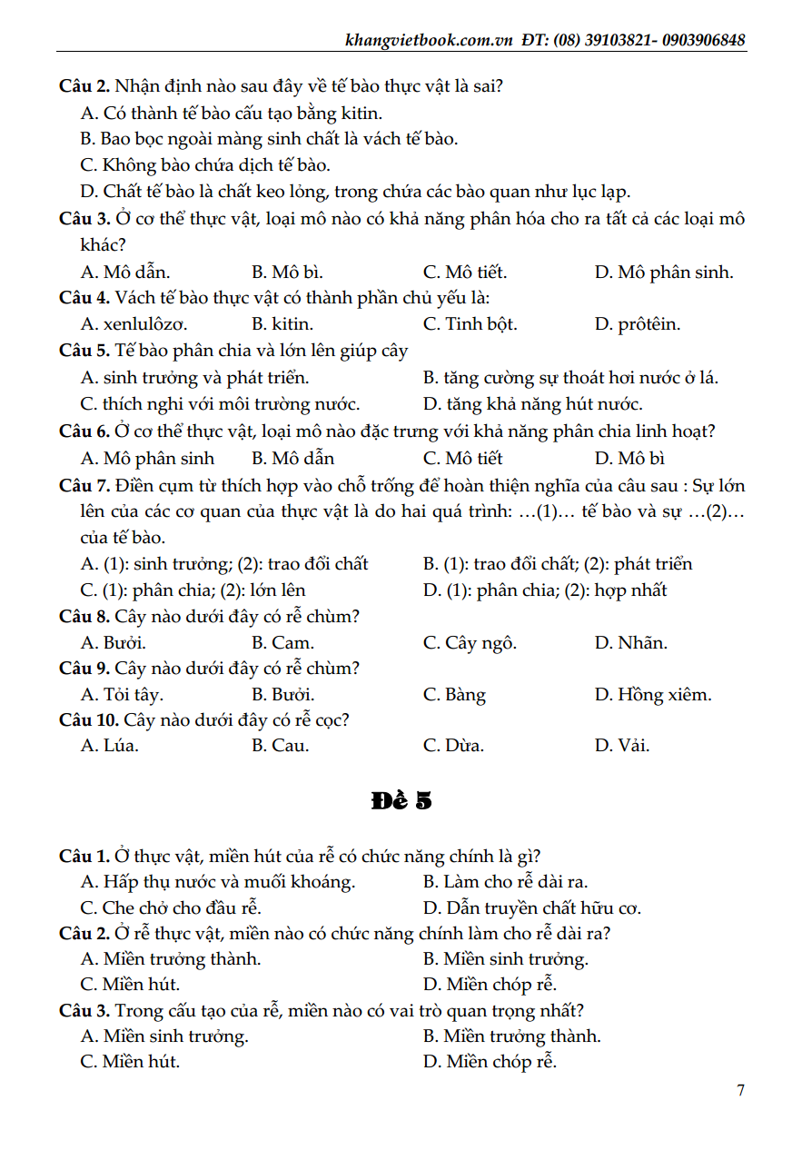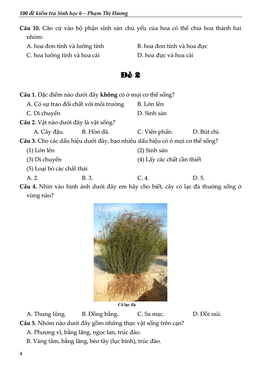 ✨100 Đề Kiểm Tra Sinh Học 6