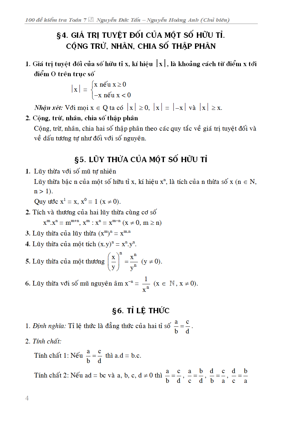 Cuốn sách "100 đề kiểm tra toán 7" là phiên bản mới nhất được tác giả Nguyễn Đức Tấn cùng 5 tác giả khác biên soạn với những nội dung mới nhất được cập nhật bám