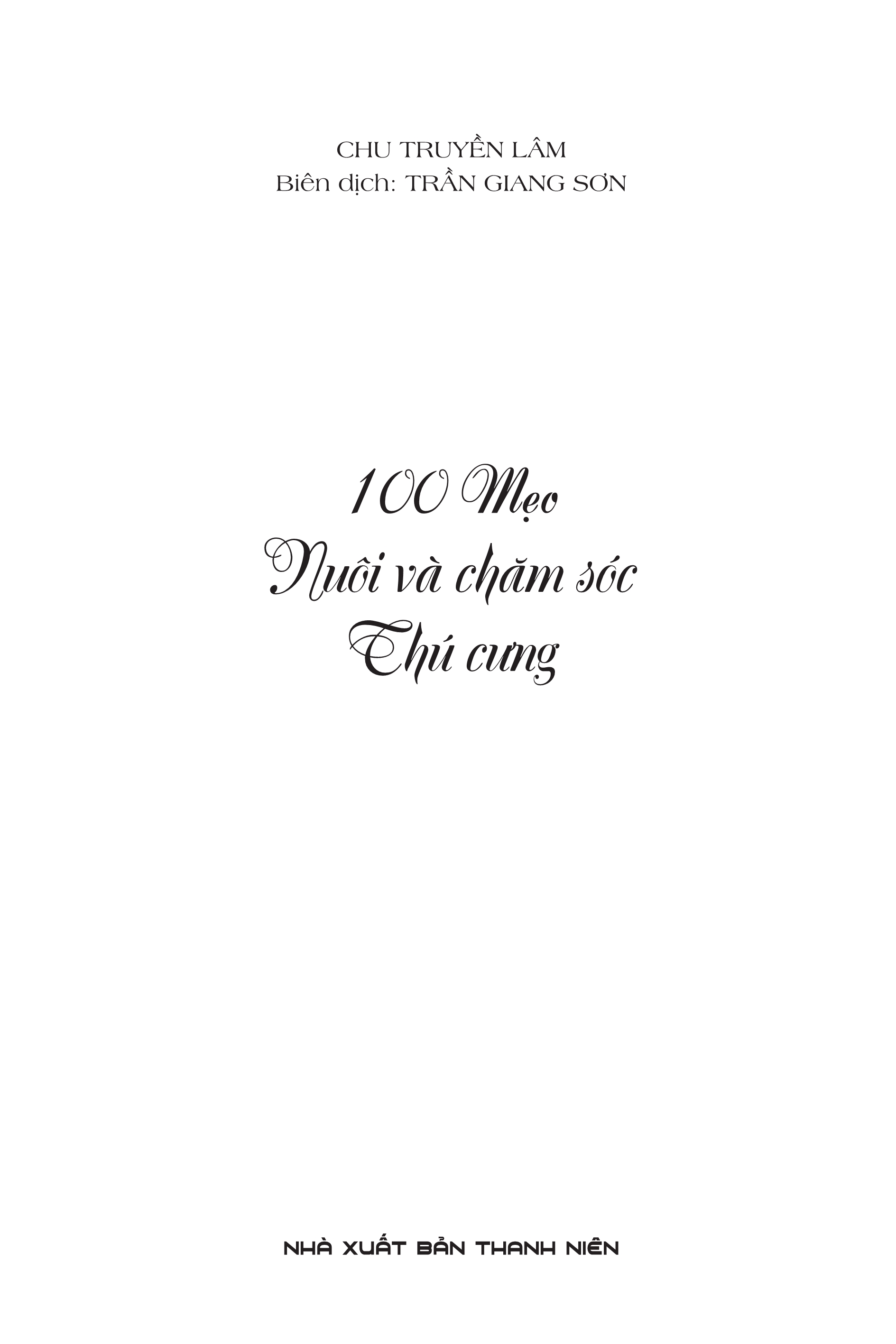 Nhưng việc nuôi thú cưng lại không hề đơn giản giống như nhiều người lầm tưởng, mà cần phải có phương pháp nuôi dưỡng, chăm sóc hợp lý và khoa học. Nếu không, bạn rất khó nuôi sống được thú cưng, ngược lại, còn làm ô nhiễm môi trường sống, thậm chí còn gây ra một số bệnh truyền nhiễm và một số phiền toái trong cuộc sống. Chính vì thế, chúng tôi đã biên soạn cuốn sách “100 mẹo nuôi dưỡng và chăm sóc thú cưng”, với mục đích giúp mọi người nuôi dưỡng và chăm sóc tốt thú cưng, để từ đó có được niềm vui từ việc nuôi thú cưng.