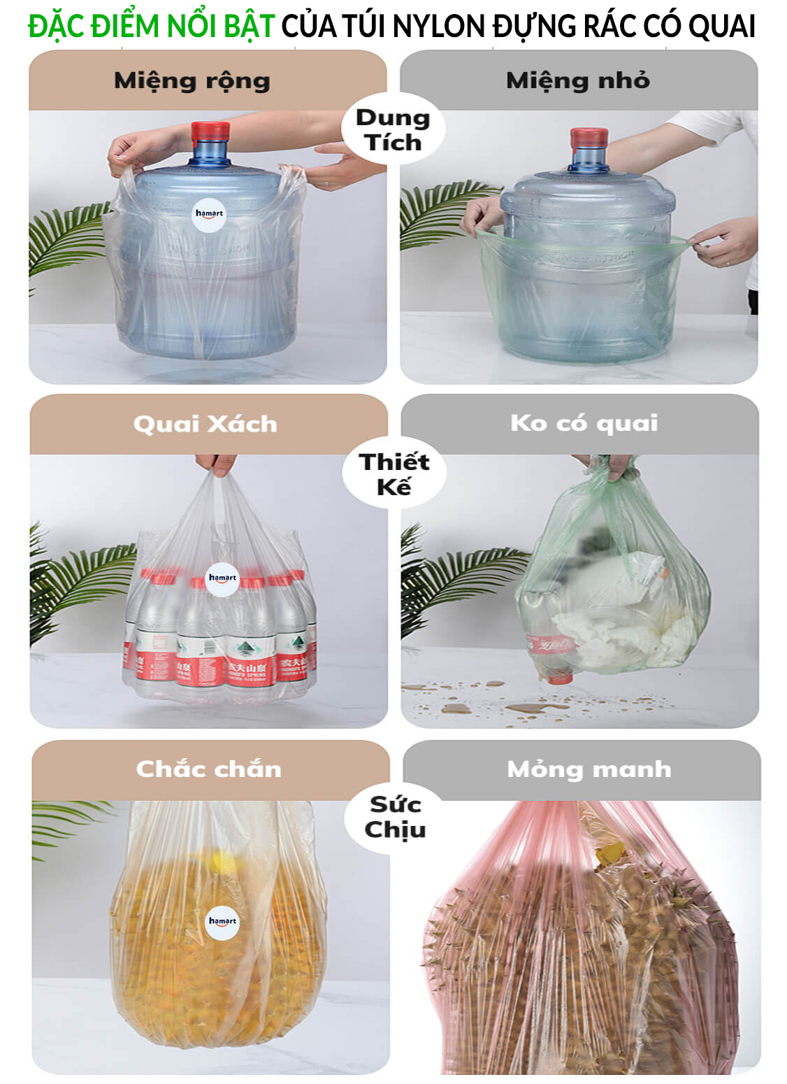 - Túi Rác Có Quai được làm từ hạt nhựa HDPE nguyên sinh dẻo dai, vô cùng thân thiện với môi trường, an toàn cho người sử dụng.