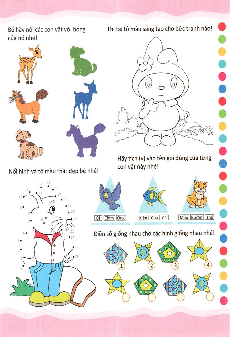 Quyển sách, có tô màu, có tính toán, có vẽ tranh, có trò chơi tìm đồ vật cất giấu, nối hình cho những sự vật hiện tượng có liêu quan, có tư duy logic… Bé từ đó được làm các dạng trò chơi khác nhau để phát triển về tư duy. Thông qua các trò chơi tư duy này, bạn có thể giúp bé rèn luyện trí não một cách tốt nhất, giúp bé biết hệ thống, luôn tự tin và biết cách xử lý các tình huống một cách nhạy bén hơn.