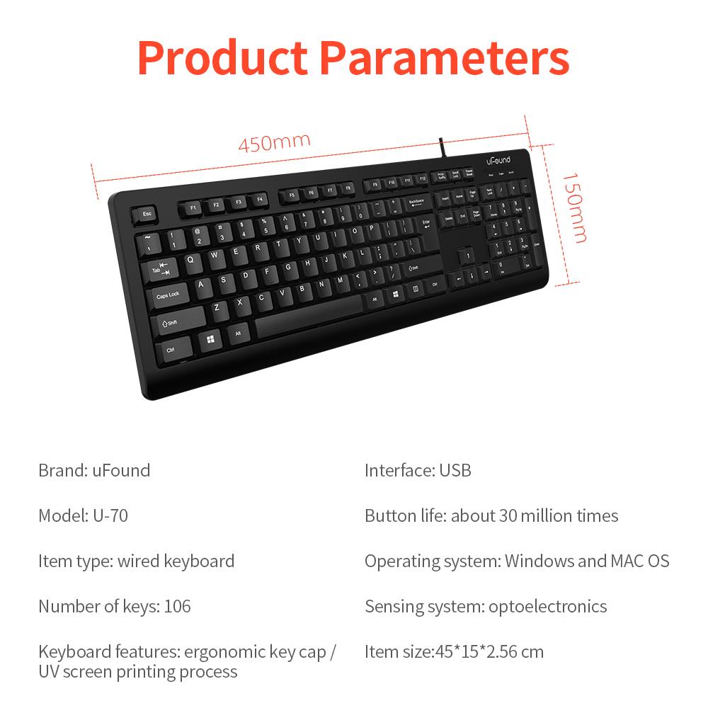 Keyboard with USB cable, plug and play, convenient and fast.