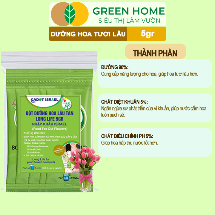 ✨10Gói Dưỡng Hoa Tươi Lâu Greenhome, Longlife, Bón Cho Hoa Cắt Cành, Gói 5gr, Lâu Tàn, Không Hôi Nước