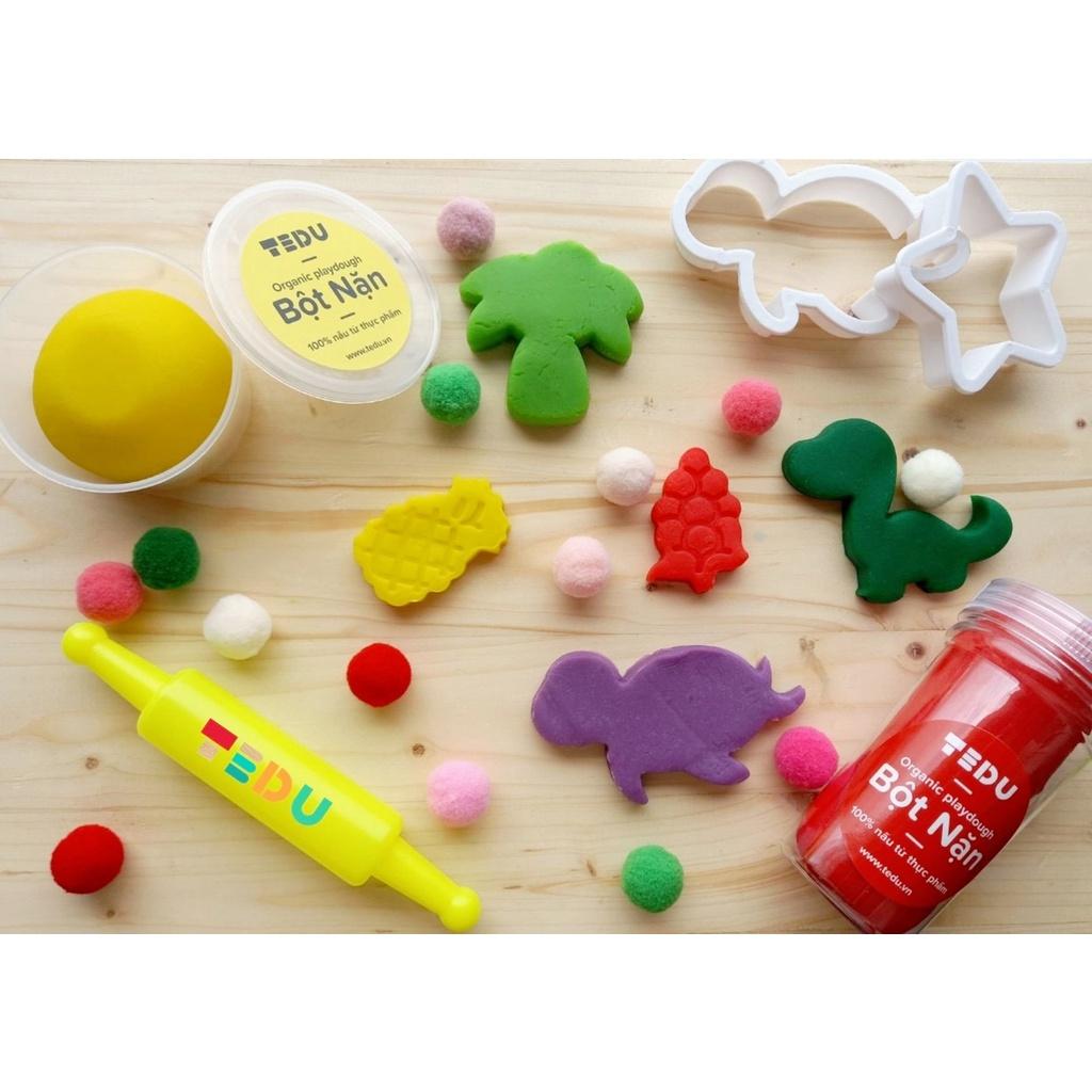 COMBO 179K XỊN SÒ: SET 08 BAO GỒM: - 04 hủ bột nặn an toàn 140gr (Inbox TEDU chọn màu thoải mái hoặc TEDU sẽ gửi màu ngẫu nhiên nhé ạ) - Dụng cụ chơi