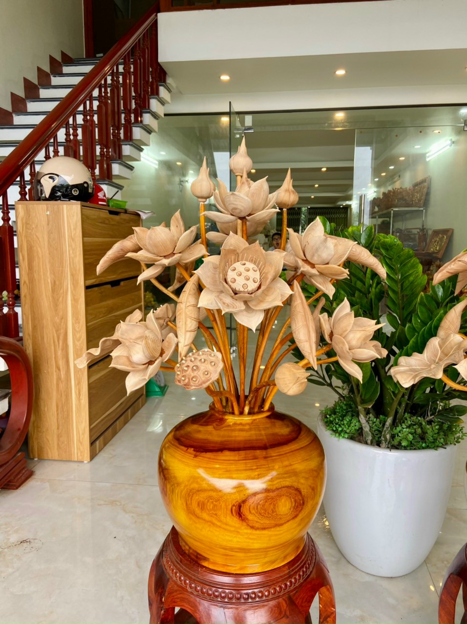 Bình hoa sen gỗ Ngọc am mùi cực thơm cao 1m2, wooden lotus
