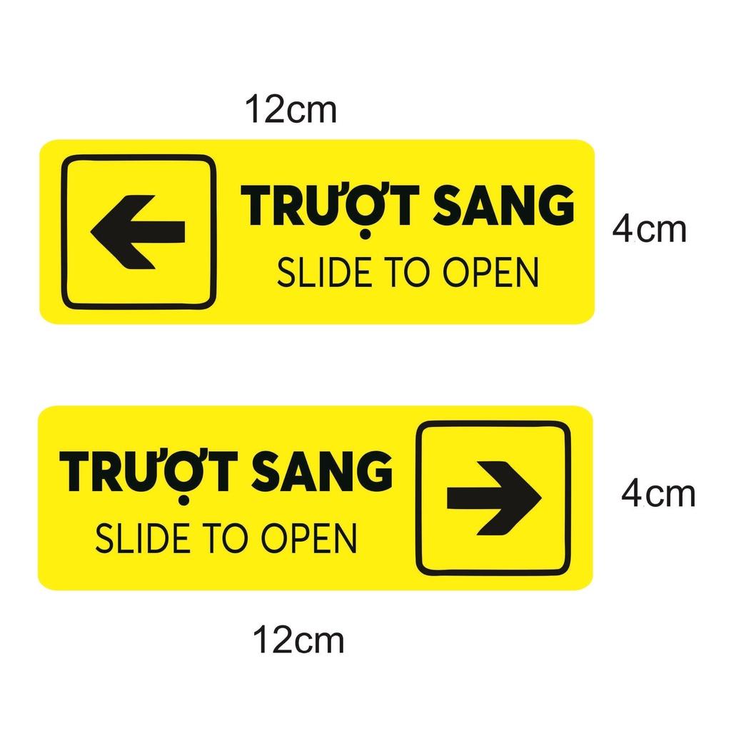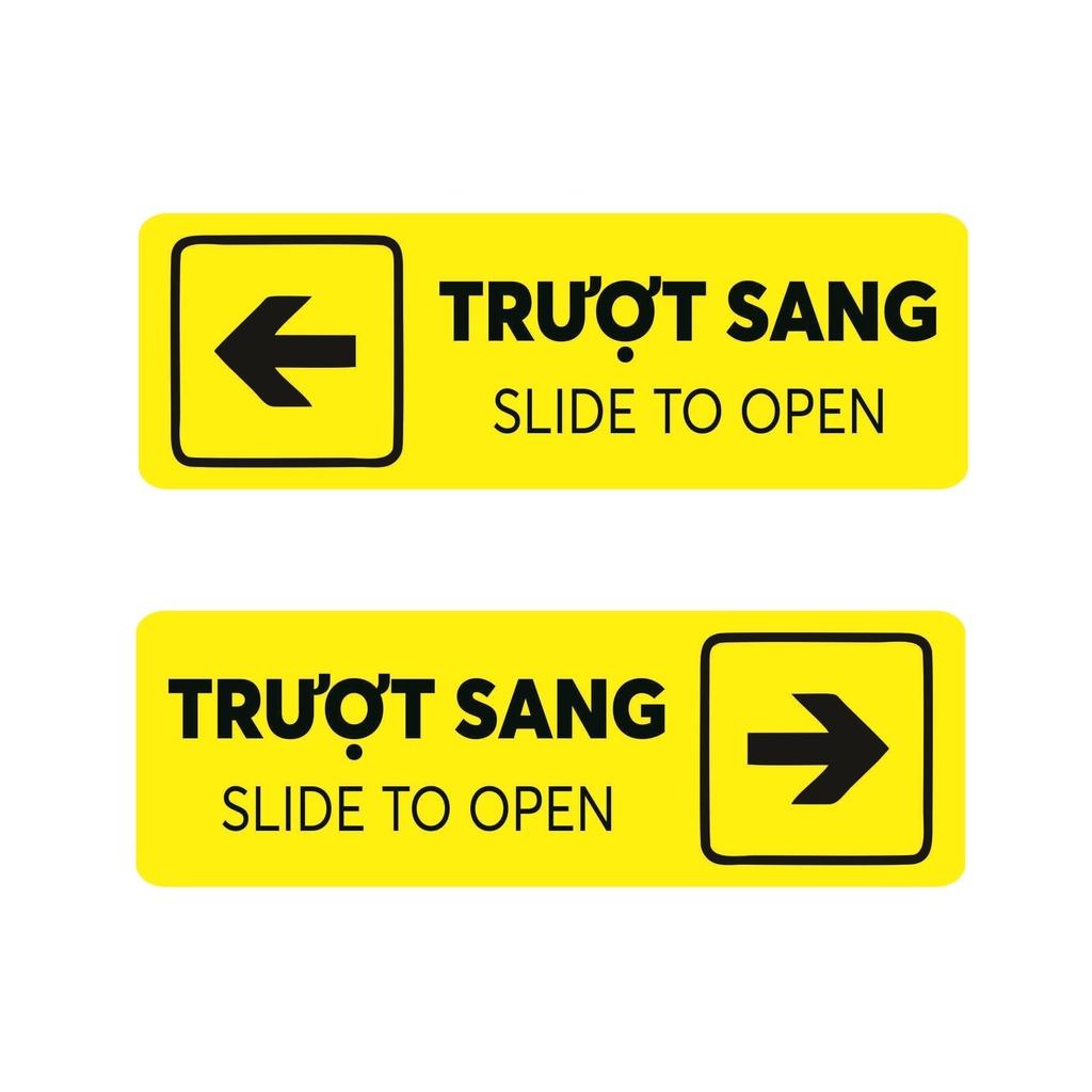 Bộ 2 Tem Nhựa Dán Cửa Kính Lùa, Chữ Trượt Sang Hai Bên Trái Phải Cửa Lùa, Cửa Kéo, Sliding Door 5002