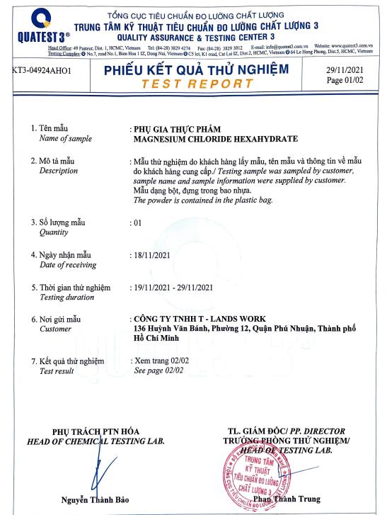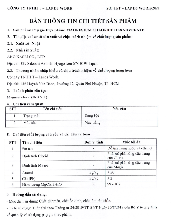 : Hàm lượng MgCl2.6H2O tinh khiết 101,4%