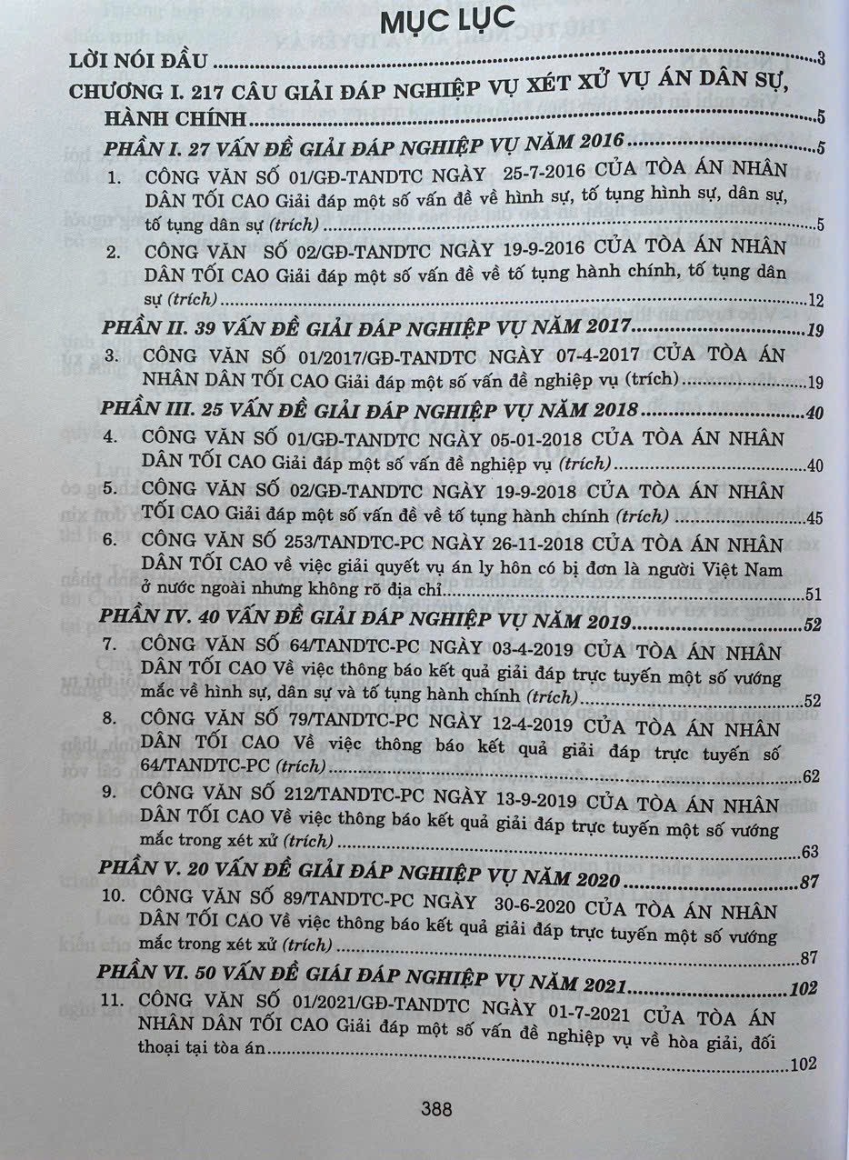 Giải đáp vướng mắc trong xét xử về Dân sự, Hình sự, Tố tụng dân sự Hành chính, Kinh doanh thương mại của Tòa án nhân dân tối cao từ năm 2016 - 2021 và