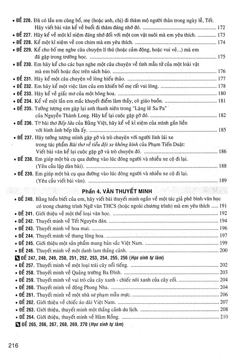Để học sinh có thể phát huy tính chủ động trong việc học, bên cạnh sự có mặt của giáo viên, các loại tài liệu tham khảo cùng đóng một vai trò hết sức quan trọng và cần thiết, đặc biệt là với một môn học đòi hỏi sự nhạy bén, tinh tế như môn Ngữ văn. Nhằm giúp các em học tốt hơn chương trình Ngữ văn 8, chúng tôi biên soạn cuốn 270 ĐỀ & BÀI VĂN HAY 8.