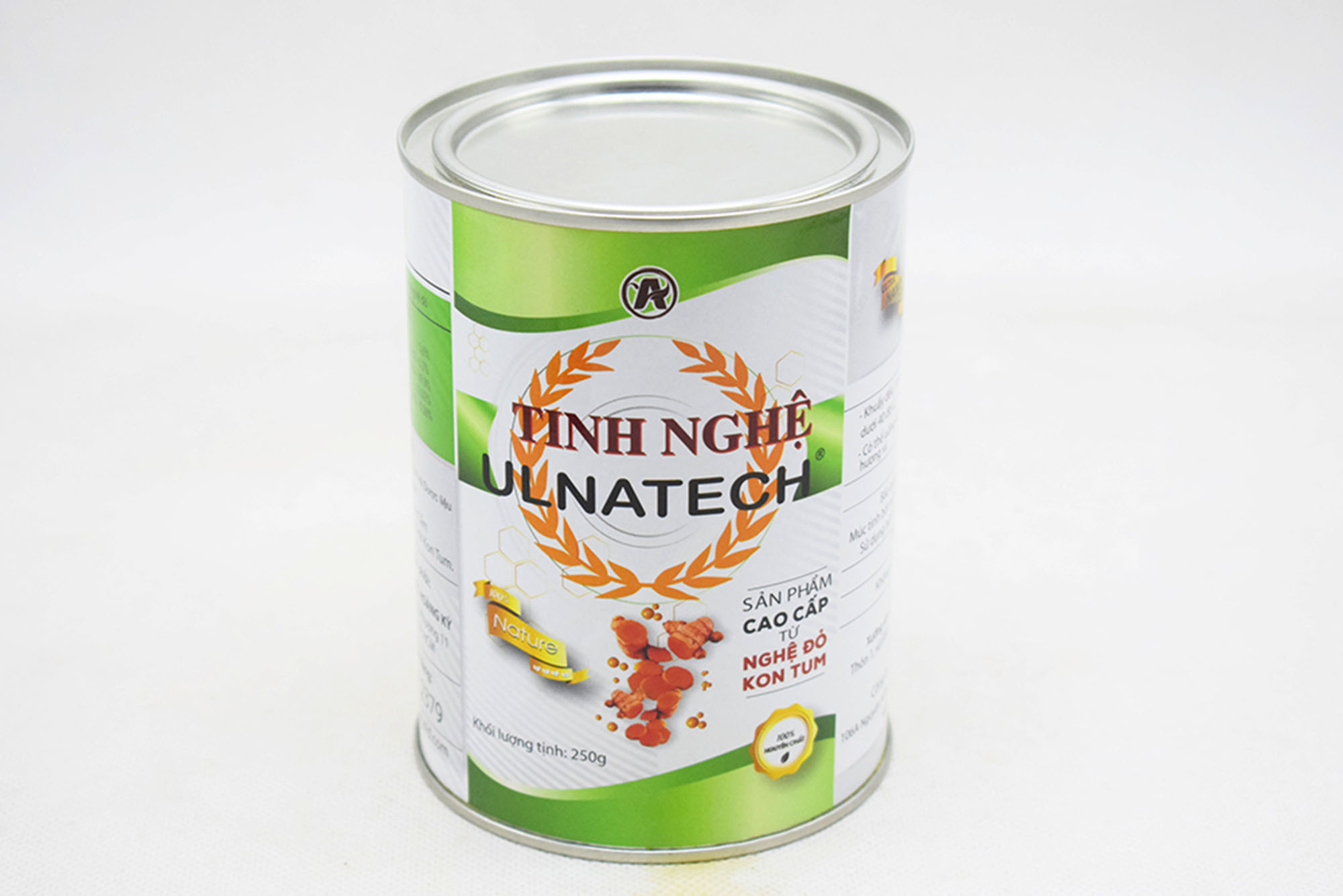 TINH NGHỆ ULNATECH Thành phần: - 100% tinh bột nghệ đỏ An Bình. - Nano Curcummin: 40.000mg/kg Hàm lượng Curcumin: 40.000mg/kg (gấp 4 lần tinh bột nghệ đỏ thông thường). Màu sắc: Vàng cam. Xuất