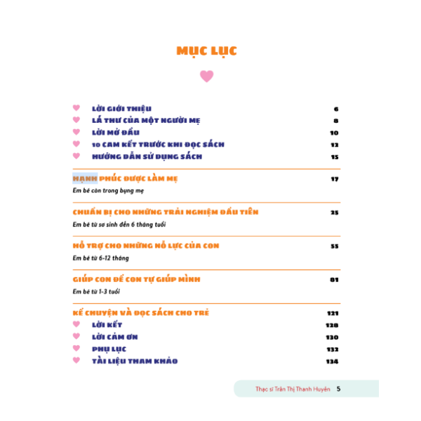 Nội dung chính: Nội dung chính được chia theo các giai đoạn: từ lúc mang thai, 0-6 tháng đầu, 6-12 tháng, 1-3 tuổi. Từng giai đoạn được xây dựng xung quanh các chủ đề cụ thể như: dinh dưỡng, giấc ngủ, vận động, sự phát triển ngôn ngữ, kỹ năng xã hội. Xuyên suốt các giai đoạn, tác giả nhấn mạnh tầm quan trọng của việc tôn trọng nhu cầu và cảm xúc ở trẻ, khuyến khích cha mẹ hãy là người bạn đồng hành thay vì áp đặt.