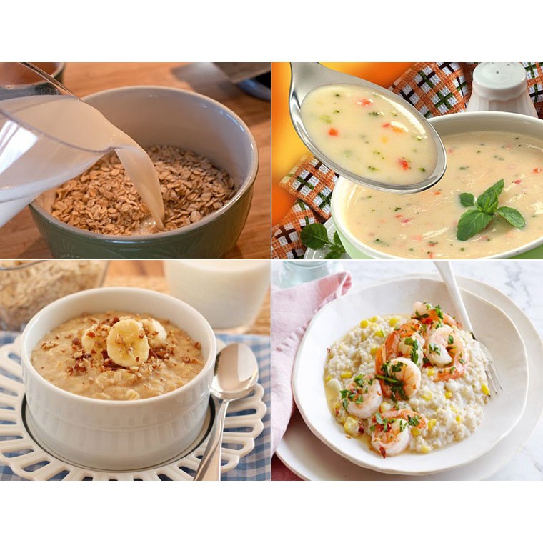 - Giàu hàm lượng các khoáng dưỡng chấtbao gồm sắt, magie, canxi, photpho… giúp làm đẹp da, phát triển hệ xương, tốt cho trí não, bảo vệ tim mạch, và tăng cường hệ miễn dịch Hướng dẫn sử dụng Ngâm với nước tầm 2-10 phút để yến mạch nhanh chín hơn, có thể đun với nước xương hầm, nêm nếm gia vị, ăn kèm thêm với rau xanh hay những món ăn tùy thích là đã được cung cấp đầy đủ dưỡng chất và năng lượng cần thiết mỗi ngày cho gia đình Ngoài ra, có thể chế biến thực đơn ăn dặm cho trẻ tùy theo độ tuổi như sau: