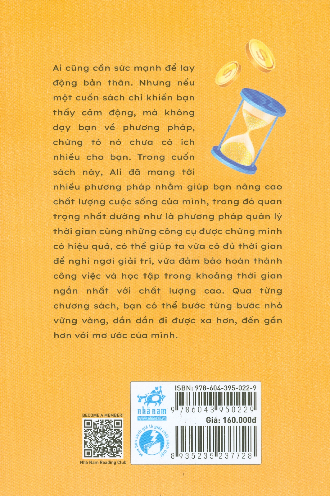 Ai cũng cần sức mạnh để lay động bản thân. Nhưng nếu một cuốn sách chỉ khiến bạn thấy cảm động, mà không dạy bạn về phương pháp, chứng tỏ nó chưa có ích nhiều cho bạn. Trong cuốn sách này, Ali đã mang tới nhiều phương pháp nhằm giúp bạn nâng cao chất lượng cuộc sống của mình, trong đó quan trọng nhất dường như là phương pháp quản lý thời gian cùng những công cụ được chứng minh có hiệu quả, có thể giúp ta vừa có đủ thời gian để nghỉ ngơi giải trí, vừa đảm bảo hoàn thành công việc và học tập trong khoảng thời gian ngắn nhất với chất lượng cao. Qua từng chương sách, bạn có thể bước từng bước nhỏ vững vàng, dần dần đi được xa hơn, đến gần hơn với ước mơ của mình.