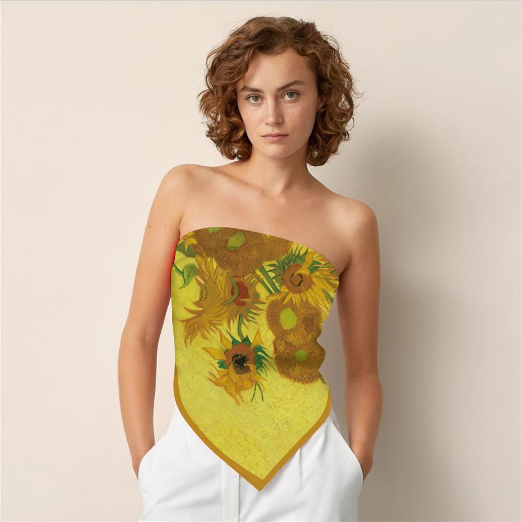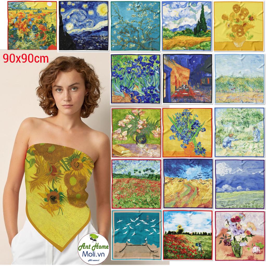 Chất liệu satin giả lụa Kích thước 90x90cm In họa tiết tranh cổ điển, tạo phong cách cá tính, Vintage Phù hợp làm khăn đội đầu, khăn quàng cổ, làm áo yếm BlackPink Cam kết giao hàng như hình. ..