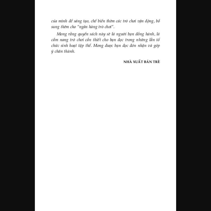 Tất cả những ai yêu thích các trò chơi vận động: Dù bạn là người lớn hay trẻ em, nếu bạn yêu thích các trò chơi vận động và muốn tìm kiếm những trò chơi mới lạ, thú vị thì cuốn sách này sẽ là một lựa chọn hoàn hảo.