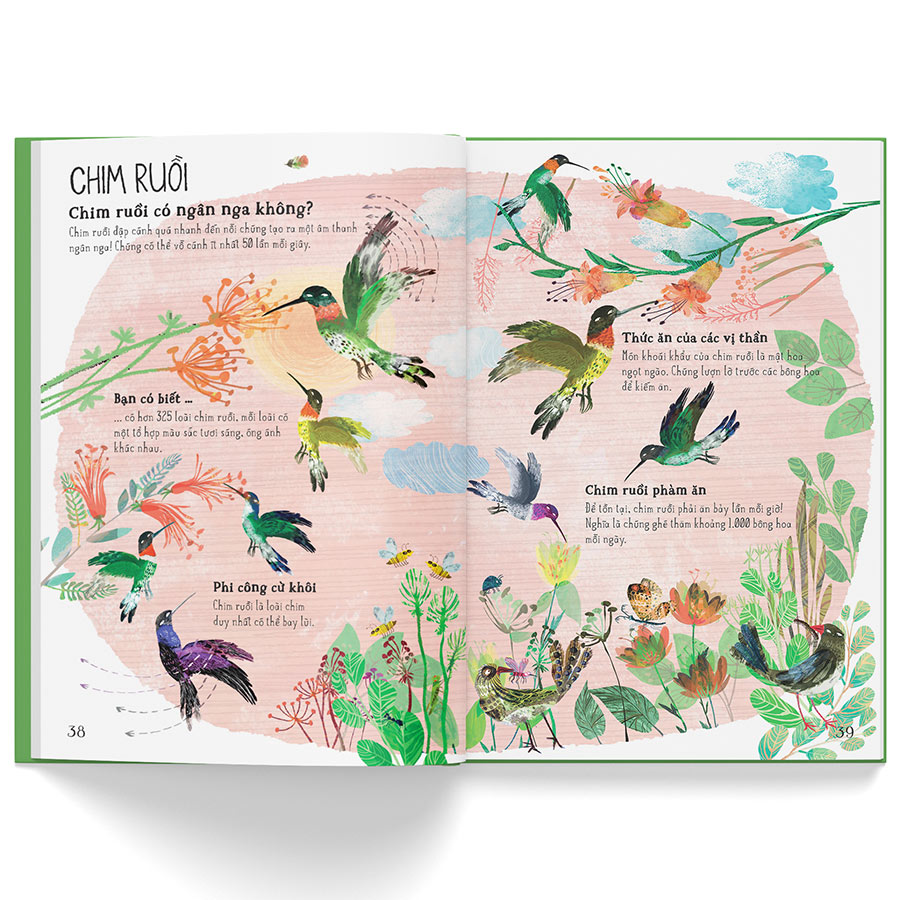 A LÊ HẤP! THẾ GIỚI CHIM Tại sao hồng hạc có màu hồng? Vẹt có biết nói không? Vì sao trứng chim có đầu nhọn? Các bí mật thú vị về loài vật biết bay đang chờ được bật mí. Đừng quên chơi trò tìm hình nhé. Bạn có bỏ sót quả trứng nào không? A lê hấp! Thế giới chim sẽ mở ra trước mắt bạn vương quốc kỳ thù của các loài chim sặc sỡ, bóng bẩy nhưng cũng không kém phần ngờ nghệch. Hãy nhảy ngay vào cuốn sách để lật mở những sự thật lý thú về cách các loài chim sinh tồn và khoe mẽ trong thế giới tự nhiên.