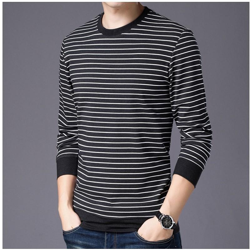 Áo thun sọc dài tay MS: ATD05 Chất liệu: thun cotton co giãn 4 chiều Màu sắc: 3 màu :Sọc Đen - Trắng Sọc Xám - Trắng Sọc Xanh - Trắng Size: M < 55kg,