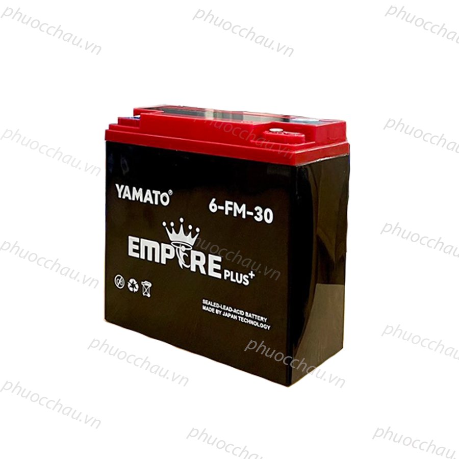 Ắc quy khô YAMATO 6-FM-30 12V-30AH là loại ắc quy kín khí, không cần bảo dưỡng là một trong những loại ắc quy lắp cho xe  máy điện tốt nhất trên thị trường hiện nay. Ắc Quy YAMATO được đánh giá là sản phẩm có chất lượng ổn định, giá thành hợp lý. Thông tin sản phẩm Điện áp: 12V - Dung lượng: 30AH Kích thước (dài rộng cao) mm: 18075165 Khối lượng: 6,6KG Màu sắc: có nhiều màu sắc thay đổi theo từng đợt nhập hàng.  Thương hiệu: Yamato (Nhật Bản) Xuất xứ: Trung Quốc Bảo hành: 09 tháng, đổi mới 100% trong trường hợp hỏng do lỗi kỹ thuật. Đặc tính Tuổi thọ hoạt động cao.  Sử dụng năng lượng hiệu quả, tiết kiệm nhiên liệu. Miễn bảo trì. Sử dụng an toàn, khi xảy ra sự cố không mong muốn acquy sẽ tự động ngắt mạch. Vỏ pin được làm bằng nhựa ABS tăng cường, với keo epoxy, chống ăn mòn, không có rò rỉ axit. Độ tinh khiết cao axit sulfuric điện phân và các chất phụ gia độc quyền xây dựng để đảm bảo rằng các điện cực để tối đa hóa hiệu suất và để ức chế việc tạo ra tự xả và ngắn mạch.  Ngoài lắp cho xe đạp điện, Ắc quy Yamato 6-FM-30 12V-30AH có thể dùng cho tất cả các lĩnh vực sau: UPS, hệ thống báo và chữa cháy, camera, chiếu sáng khẩn cấp, dự phòng nguồn y tế và thiết bị y tế, các thiết bị kiểm tra cầm tay, dự phòng chiếu sáng cho tàu biển, đường sắt, hàng không, hệ thống dự phòng dữ liệu máy tính, hệ thống dự phòng gia đ́nh và văn phòng, sử dụng cho hệ thống điện năng lượng mặt trời, ...