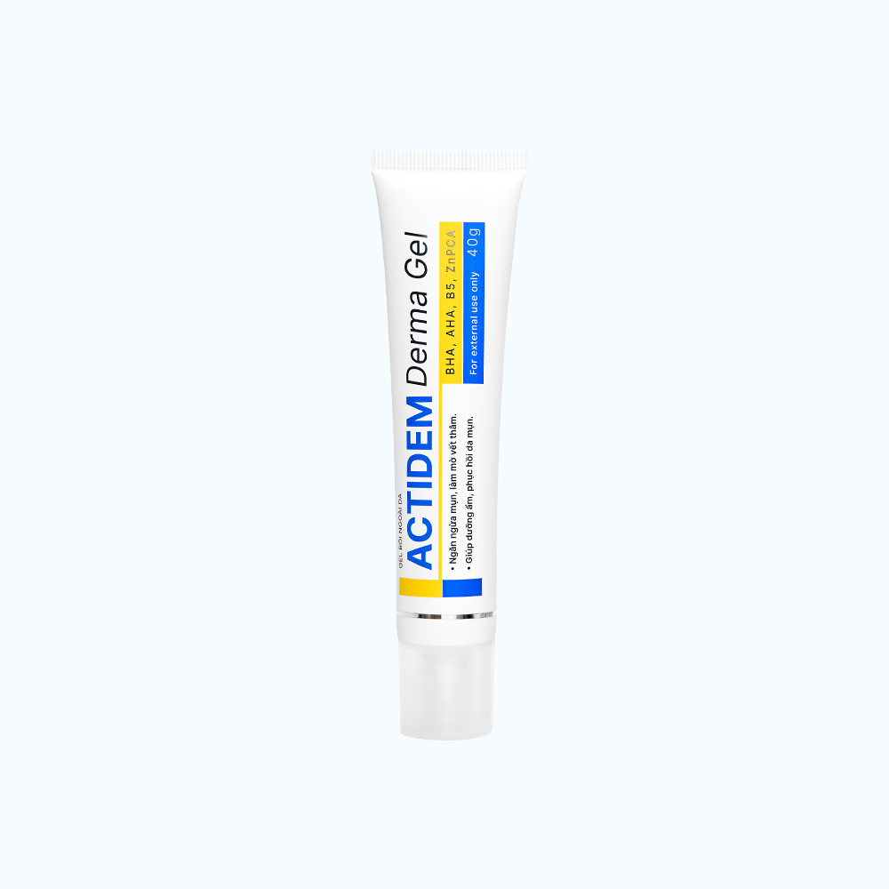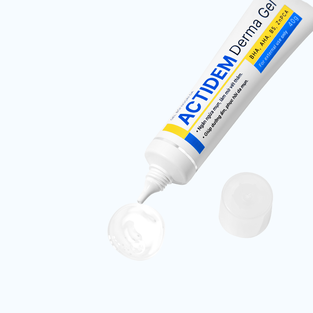 Mua tại TiktokSản phẩm đã được thay đổi bao bì. Pharmacity vẫn còn cả hai loại bao bì mới và cũ tại các nhà thuốc. Vì vậy, đơn hàng của khách hàng có thể nhận được một trong hai loại bao bì, tùy thuộc vào tình trạng tồn kho tại nhà thuốc gần khu vực của khách hàng Gel Actidem Derma là gì? Actidem Derma Gel là dòng sản phẩm chăm sóc da với công năng giúp hỗ trợ giảm tình trạng mụn, ngăn ngừa mụn, giúp làm mờ thâm mụn, đồng thời giúp dưỡng ẩm da, giúp phục hồi da, mang lại làn da mịn màng. Thành Phần Gel Actidem Derm Aqua, Carbomer, Glycolic Acid, Sodium Hydroxide, EDTA, Hyaluronic Acid, Pantothenic Acid, Lactic Acid, Zinc PCA, Phenoxyethanol, BHA, Centella Asiatica Extract, Parfum, Sodium Citrate, Ethylhexylglycerin, Polysorbate 20.