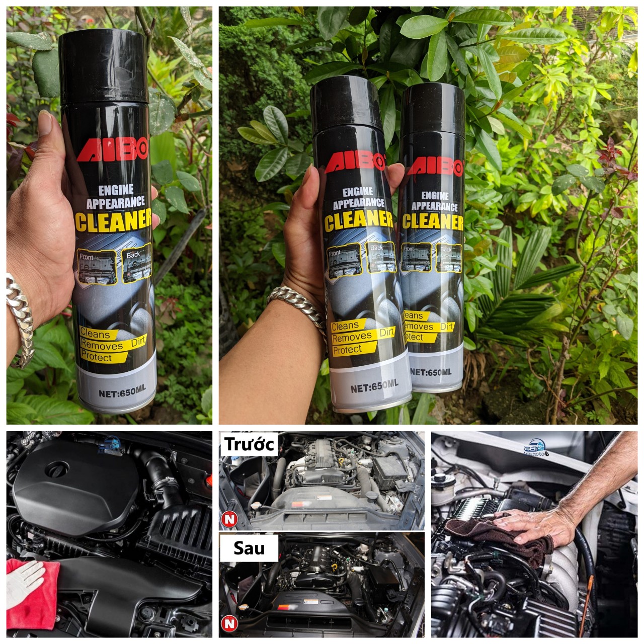 - Dung dịch vệ sinh động cơ khoang máy AIBO - 650ML được đặc chế từ chất có hoạt tính bề mặt đặc biệt bởi các chuyên gia hàng đầu, không những có khả năng làm sạch vết bẩn một cách đáng kinh ngạc, sản phẩm còn giúp tạo một lớp màng bảo vệ trên bề mặt động cơ, nhờ đó giúp chống rỉ, chống nóng cho động cơ, giúp xe hoạt động mạnh mẽ và hiệu quả hơn. Công dụng của Dung dịch vệ sinh động cơ khoang máy AIBO - 650ML Sản phẩm được đặc chế theo công thức đặc biệt, có khả năng loại bỏ nhanh chóng và hiệu quả bất kì vết bẩn nào bám trên bề mặt động cơ. Loại bỏ hiệu quả các vết bẩn mà không gây nên bất kì tổn hại nào trên bề mặt động cơ khi sử dụng. Tạo lớp màng bảo vệ trên bề mặt động cơ xe của bạn, nhờ đó giúp hạn chế những tác động từ môi trường, đồng thời chống rỉ cho động cơ hiệu quả. Có hiệu quả có thể loại bỏ bất kỳ vết bẩn, vết dơ và các chất bóng nhờn trên bề mặt của động cơ mà không cần sơn mài làm tổn hại đến phụ kiện. Tính năng chống rỉ và làm mát động cơ để động cơ máy làm việc hiệu quả hơn. Hướng dẫn sử dụng và bảo quản Dung dịch vệ sinh động cơ khoang máy AIBO - 650ML