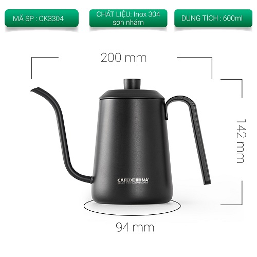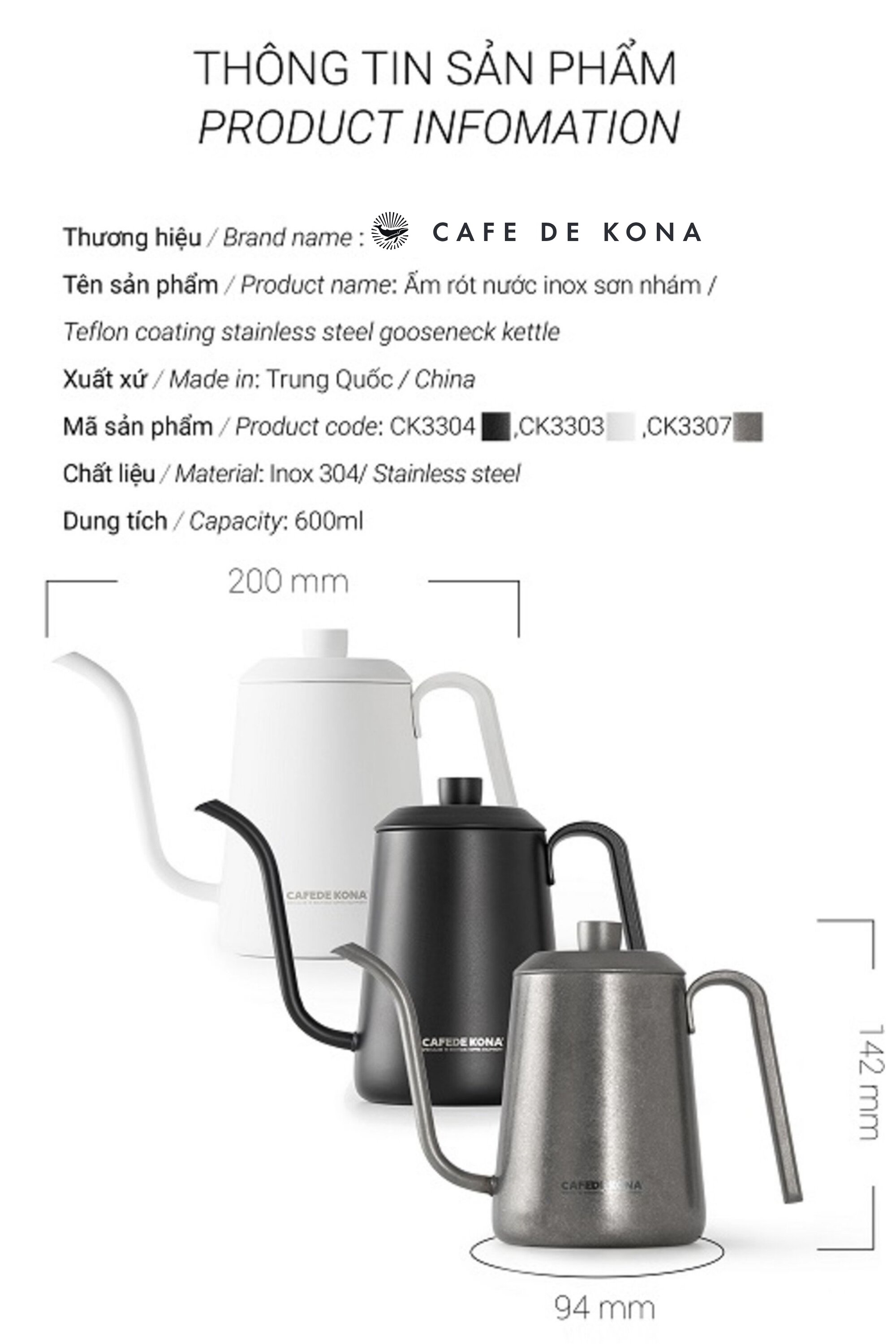 ẤM RÓT NƯỚC NÓNG PHA CÀ PHÊ POUR OVER BẰNG INOX - CÁN CẦM KIM LOẠI CAFE DE KONA