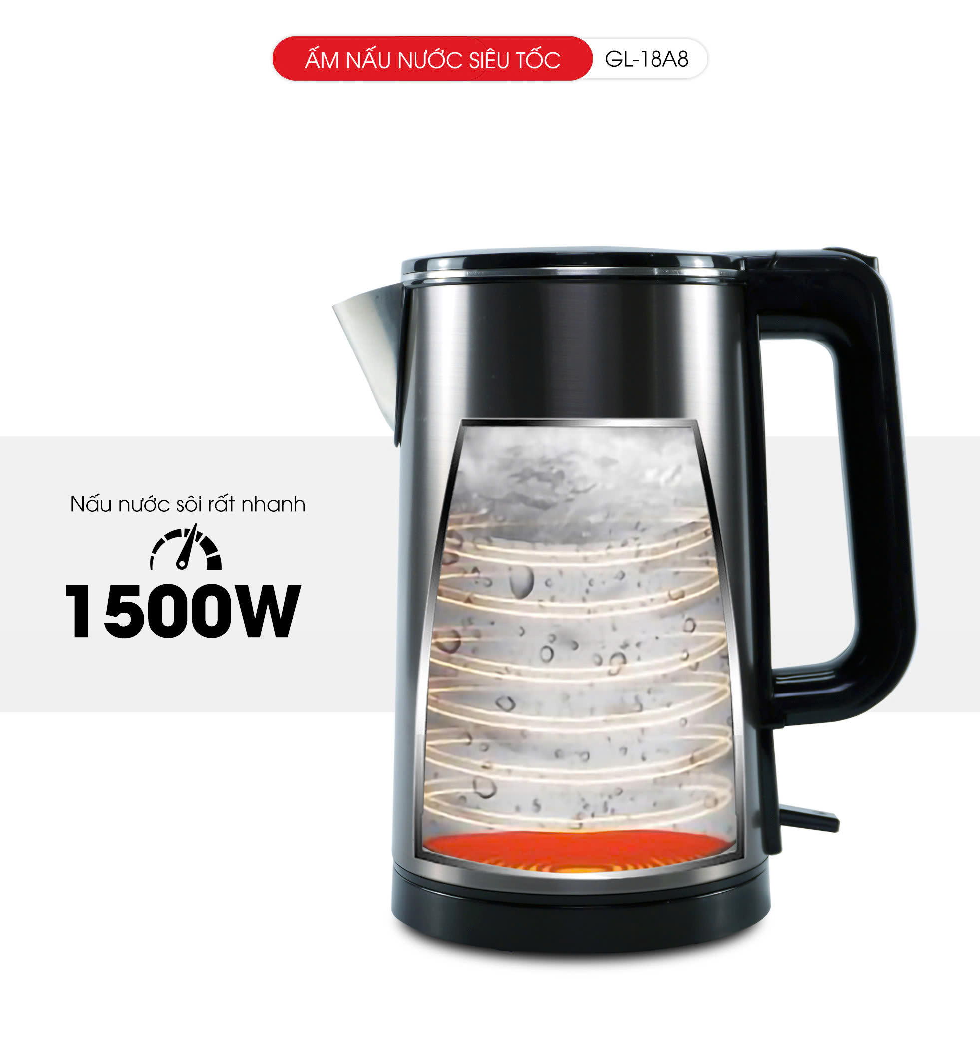 ẤM ĐUN NƯỚC SIÊU TỐC GL-18A8 - SỰ LỰA CHỌN HOÀN HẢO CHO MỌI GIA ĐÌNH Bạn đang tìm kiếm một chiếc ấm đun nước vừa tiện lợi, vừa an toàn và sang trọng? Ấm đun nước siêu tốc GL-18A8 chính là giải pháp hoàn hảo dành cho bạn!