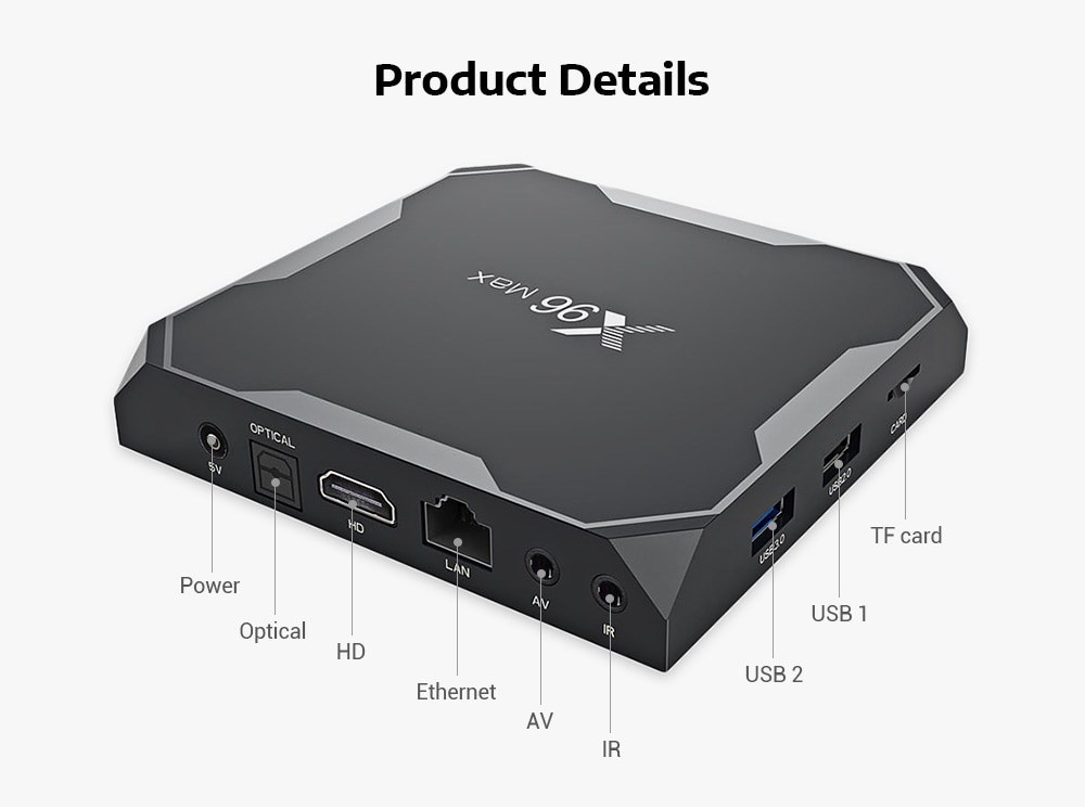 - X96 max pro hiện đang là sản phẩm được ưu chuộng trên thị trường không những bởi hiệu suất tuyệt vời của nó mà con do thiết kế . Với thiết kế mang phong cách cách của 1 siêu phẩm sản phẩm chỉ nhỏ gọn bằng 1 chiếc smart phone mang đến sự hiện đại và sang trang cho ngôi nhà bạn.