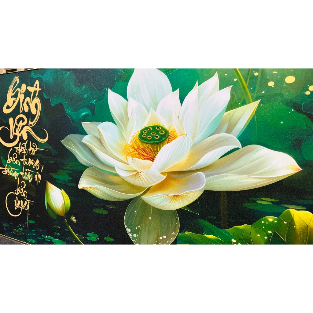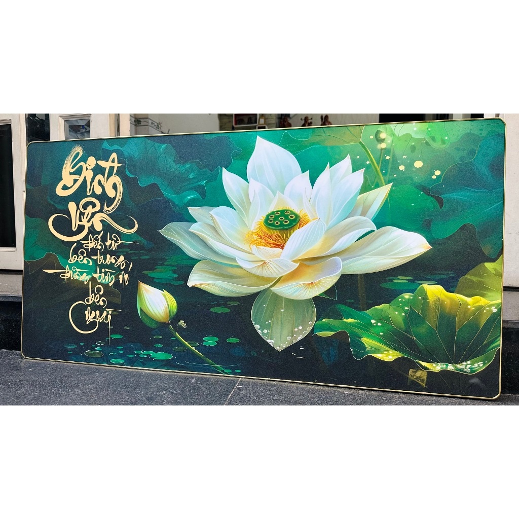 ✨(ẢNH CHỤP THẬT) Tranh treo tường tráng gương hoa sen trắng trang trí phòng khách, phòng thờ