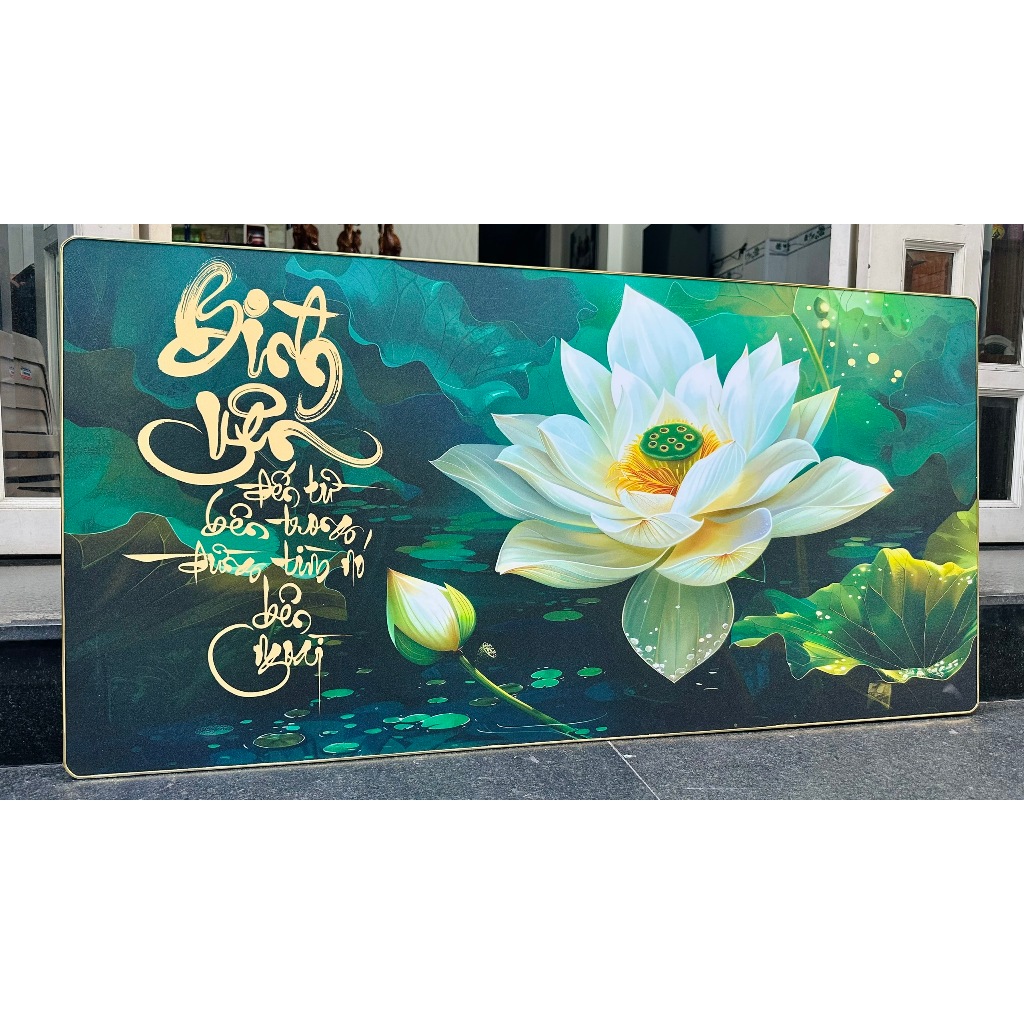 Tranh treo tường tráng gương hoa sen chữ Tịnh thư pháp - Kích thước của tranh : Kích thước : 35x70cm - 45x85cm - 55x105cm - 60x120cm - Chất liệu : Tráng gương (mặt mica