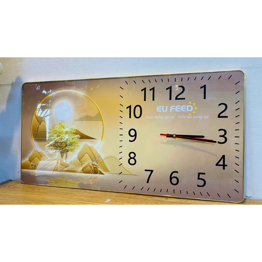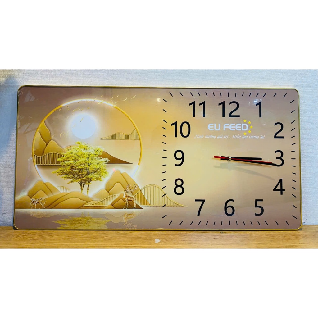 ✨(ẢNH THẬT)Tranh đồng hồ hươu vàng nghệ thuật bo viền vàng trang trí quà tặng tân gia khai trương
