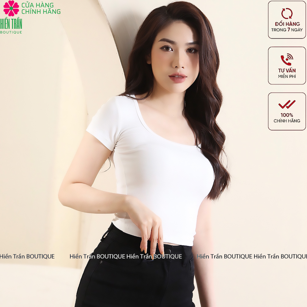 ✨Áo croptop Hiền Trần BOUTIQUE cổ vuông cộc tay vải thun ôm body crotop nữ cotton co giãn tốt