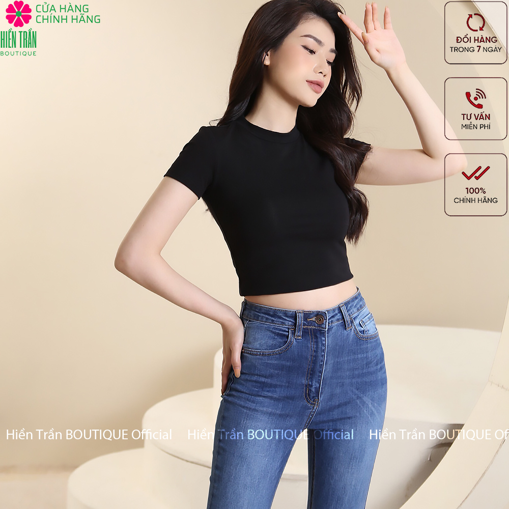 ✨Áo croptop nữ Hiền Trần BOUTIQUE cổ tròn vải cotton bozip co giãn thoáng mát freesize ngắn tay thun đẹp