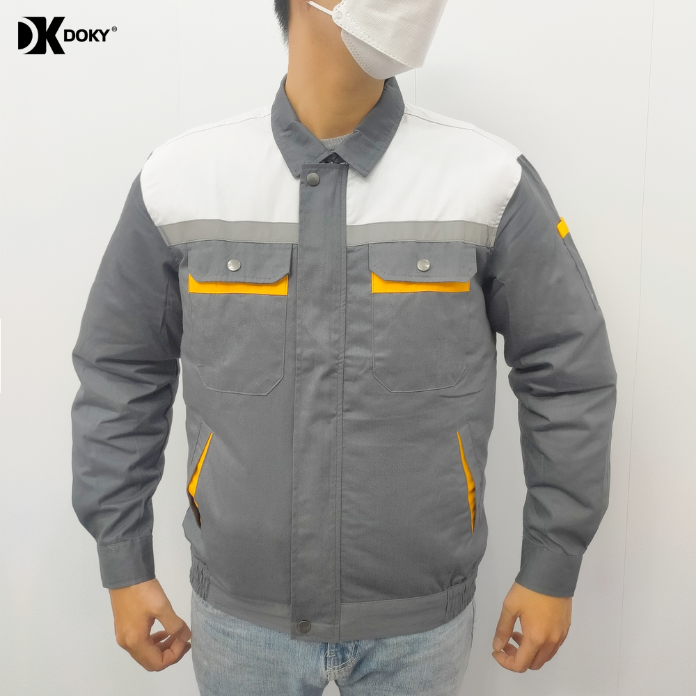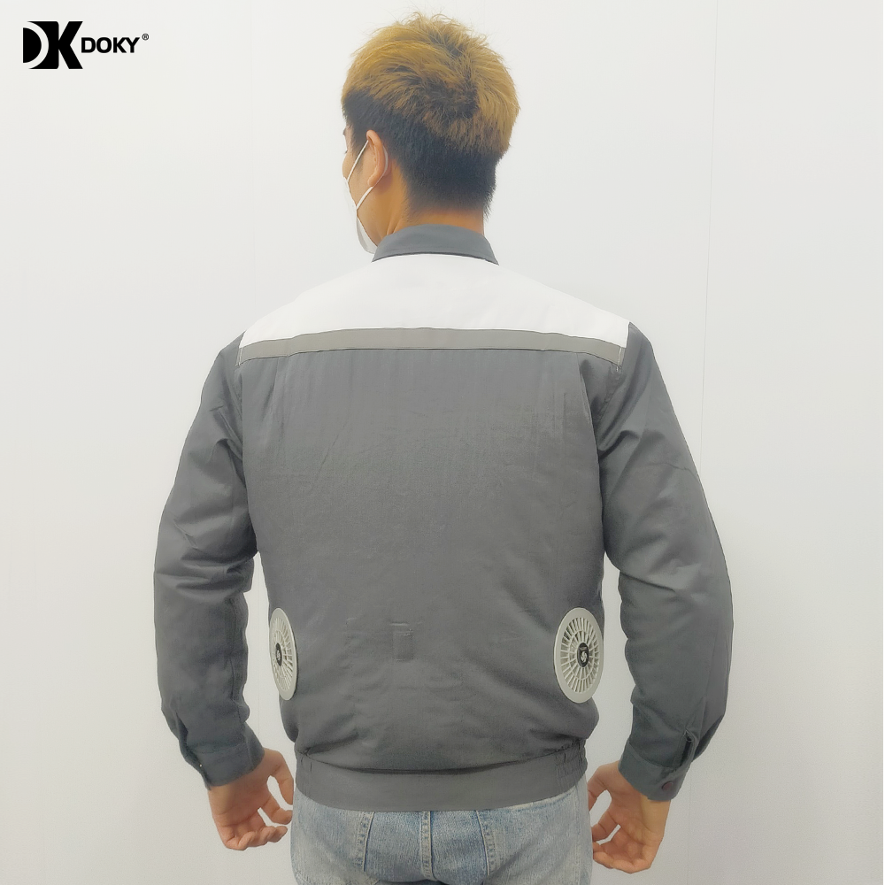- Áo sử dụng 2 quạt thổi không khí từ ngoài làm mát, giảm nhiệt độ, điều hoà toàn bộ cơ thể.
