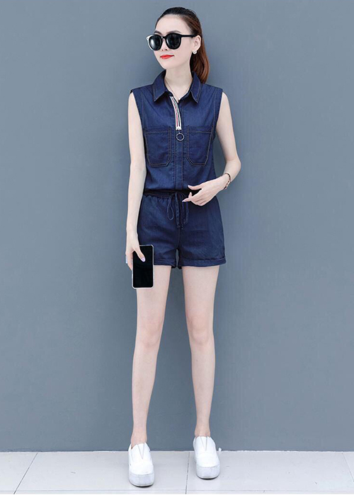Áo Jean Liền Quần Thời Trang Màu Sắc: Xanh Đen Chất liệu: Jean Thun co giãn tốt, thấm hút, thoáng mát, dễ vận động, tạo cảm giác thoải mái, tự tin cho người mặc. Kiểu Dáng: Thiết kế năng động trẻ trung. Đường may sắc xảo, dáng đẹp. Sản phẩm chất lượng, cổ bẻ sơ mi, sát nách, đính viền màu kèm khoen ấn tượng, thun eo co giãn tốt, phối túi tiện lợi. Đơn Vị: Cm Kích Thước: Vòng Ngực: 84 - 90, Vòng Eo: 64 - 76, Vòng Mông: 80 - 100; Chiều Dài: 80 ( Phù hợp với bạn nữ từ 50kg -> 55kg, chiều cao dưới 1,65 mét)