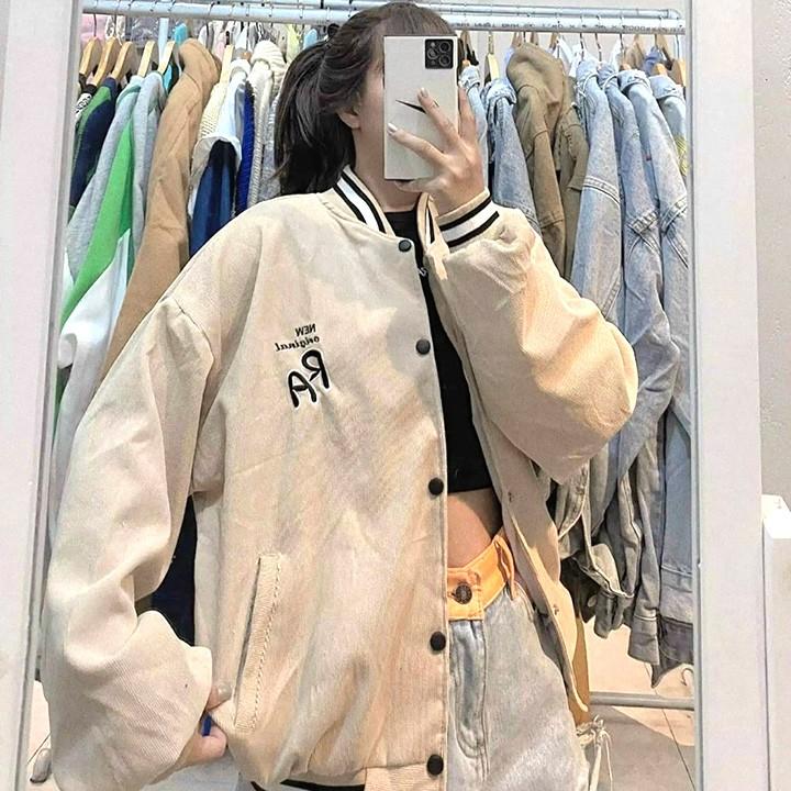 ✨ÁO KHOÁC BOMBER KAKI NHUNG GÂN Thêu Nổi RA (M3140 - Kèm Ảnh Thật)