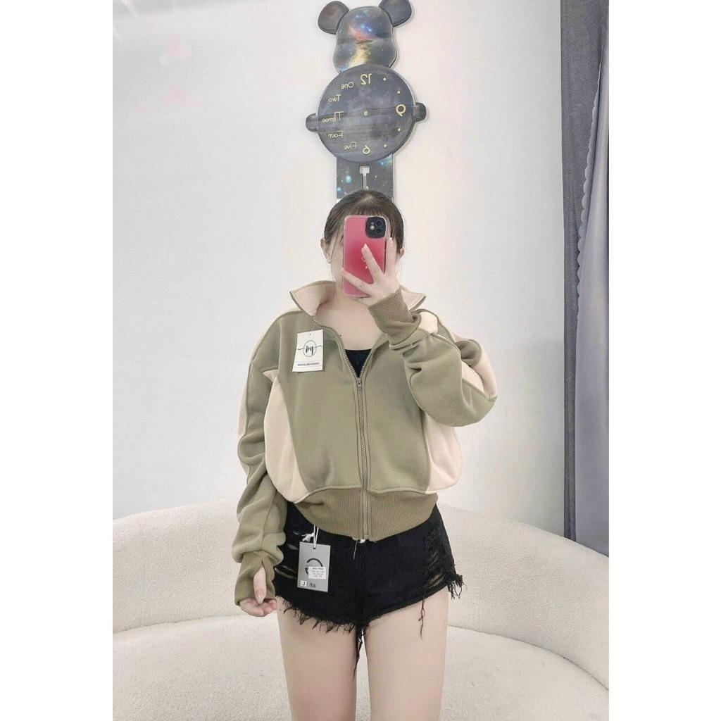 Áo khoác nữ nỉ chống nắng kéo cao nỉ dày chống nắng dáng lửng phối màu tay xỏ ngón 4 túi nón to hàng đẹp xitin là lựa chọn tuyệt vời cho các cô gái