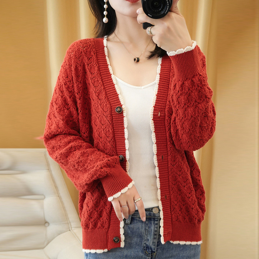 ✨Áo khoác len dáng ngắn, áo cardigan len đóng cúc phối ren mẫu mới thu đông AK02