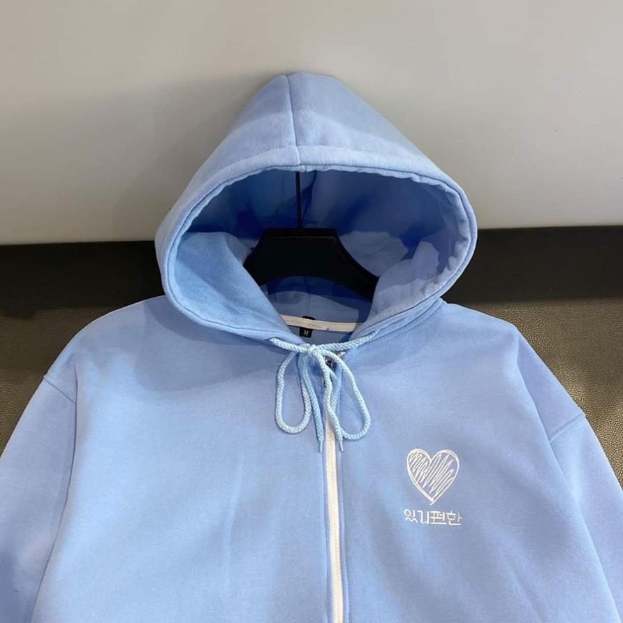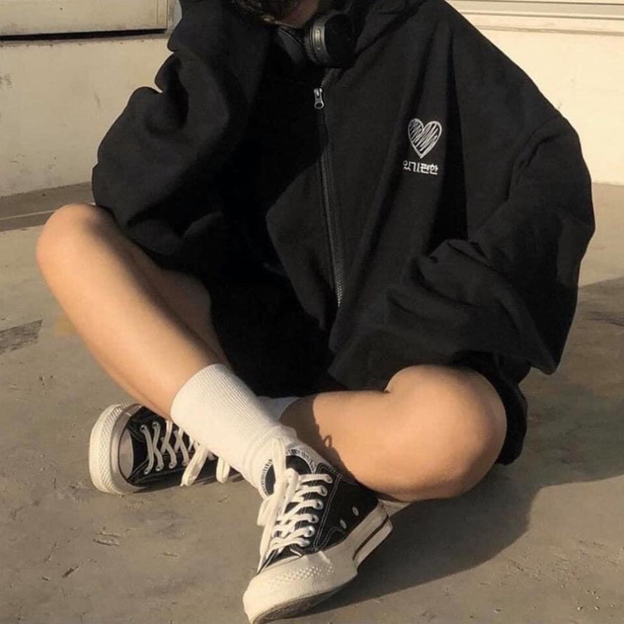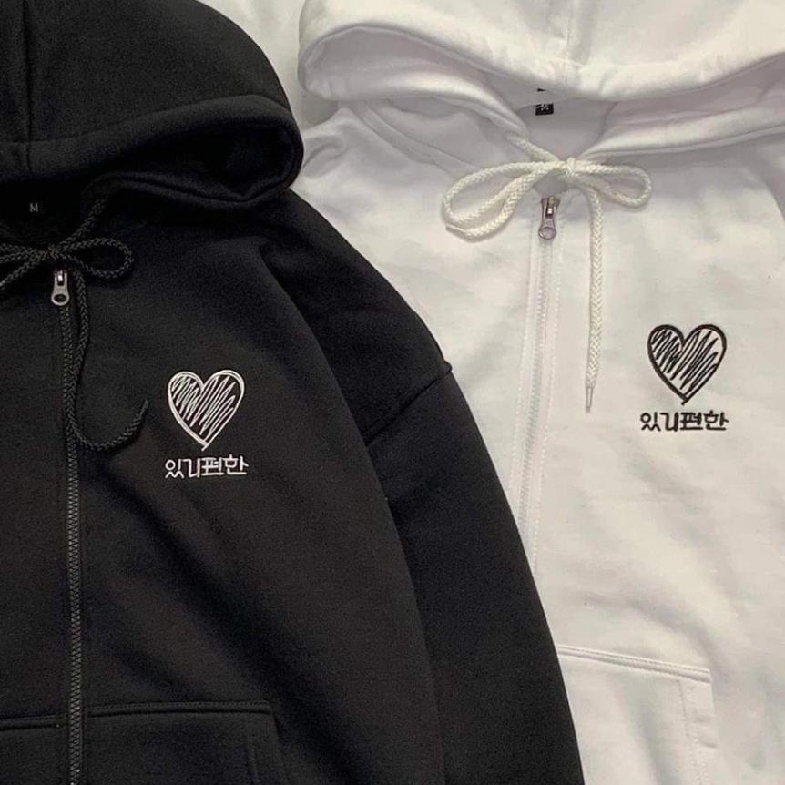 Áo khoác hoodie Heart Unisex Saranghae hình trái tim thêu chất nỉ bông dây kéo form rộng