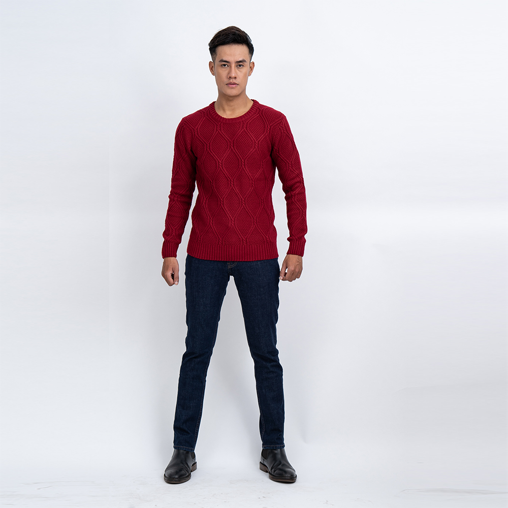 Áo len tay dài cổ tròn hoa văn hình thoi dành cho nam