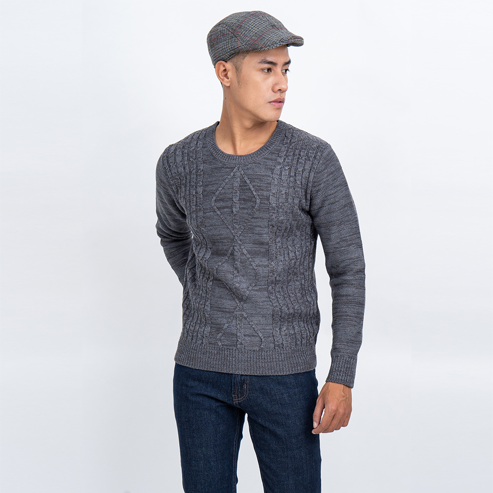 Áo len nam dài tay cổ tròn màu xanh đen NOVELTY 180583T  Áo len nam dài tay cổ tròn màu ghi đậm NOVELTY 180582T