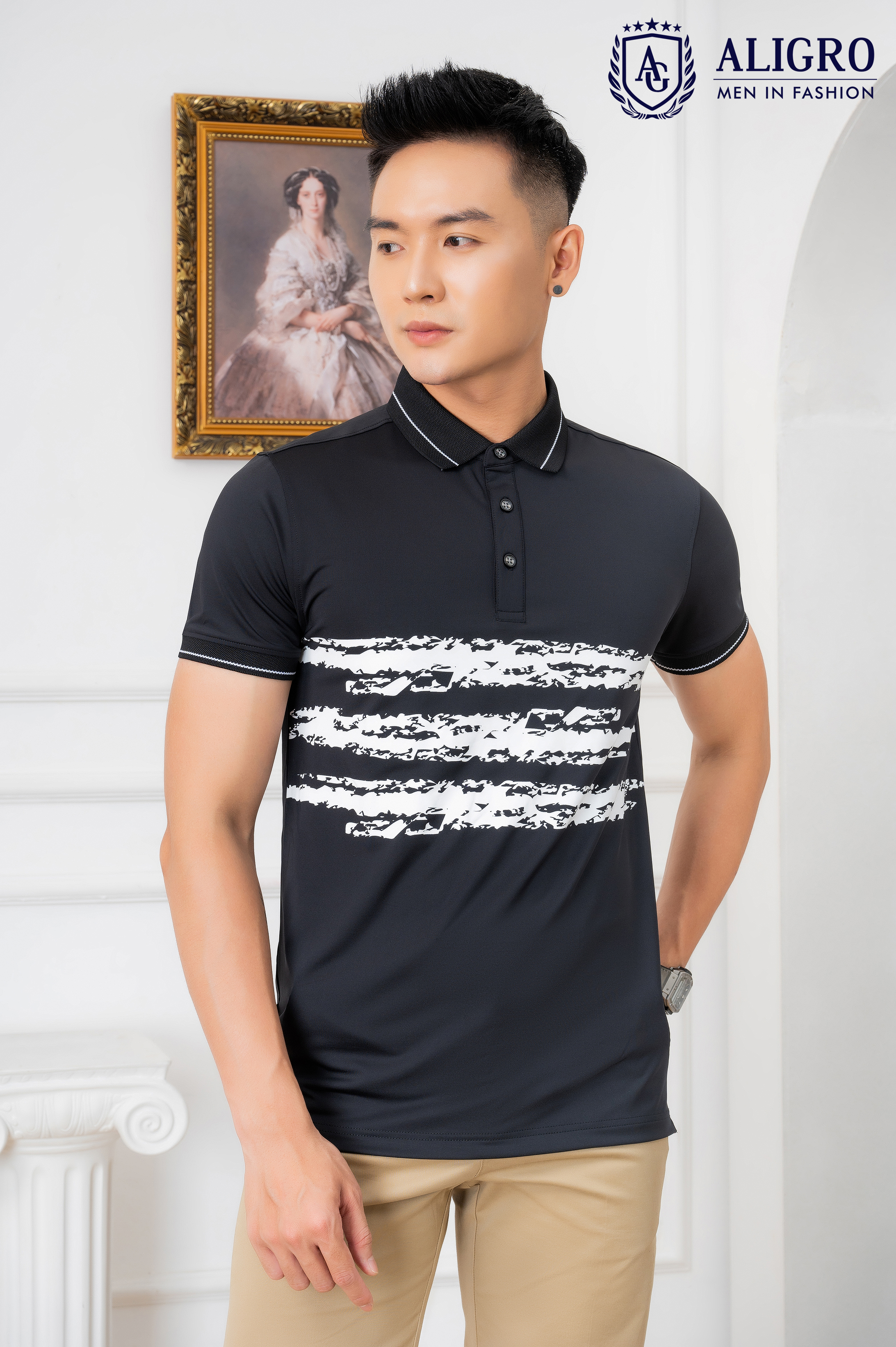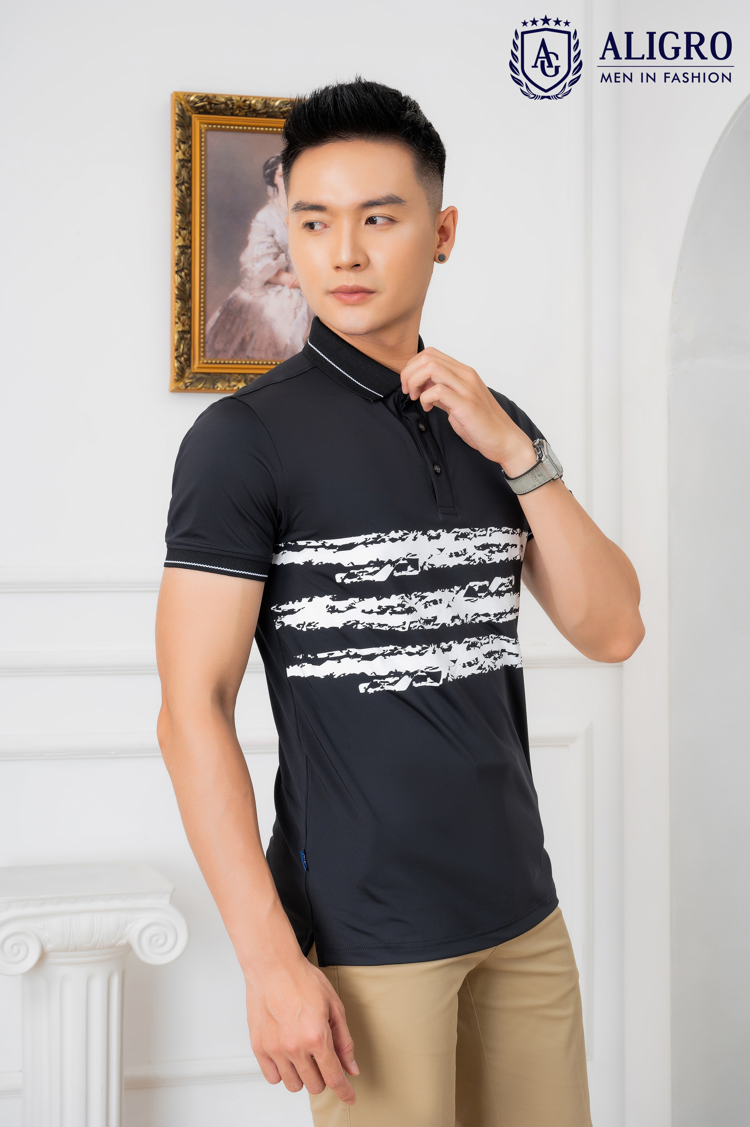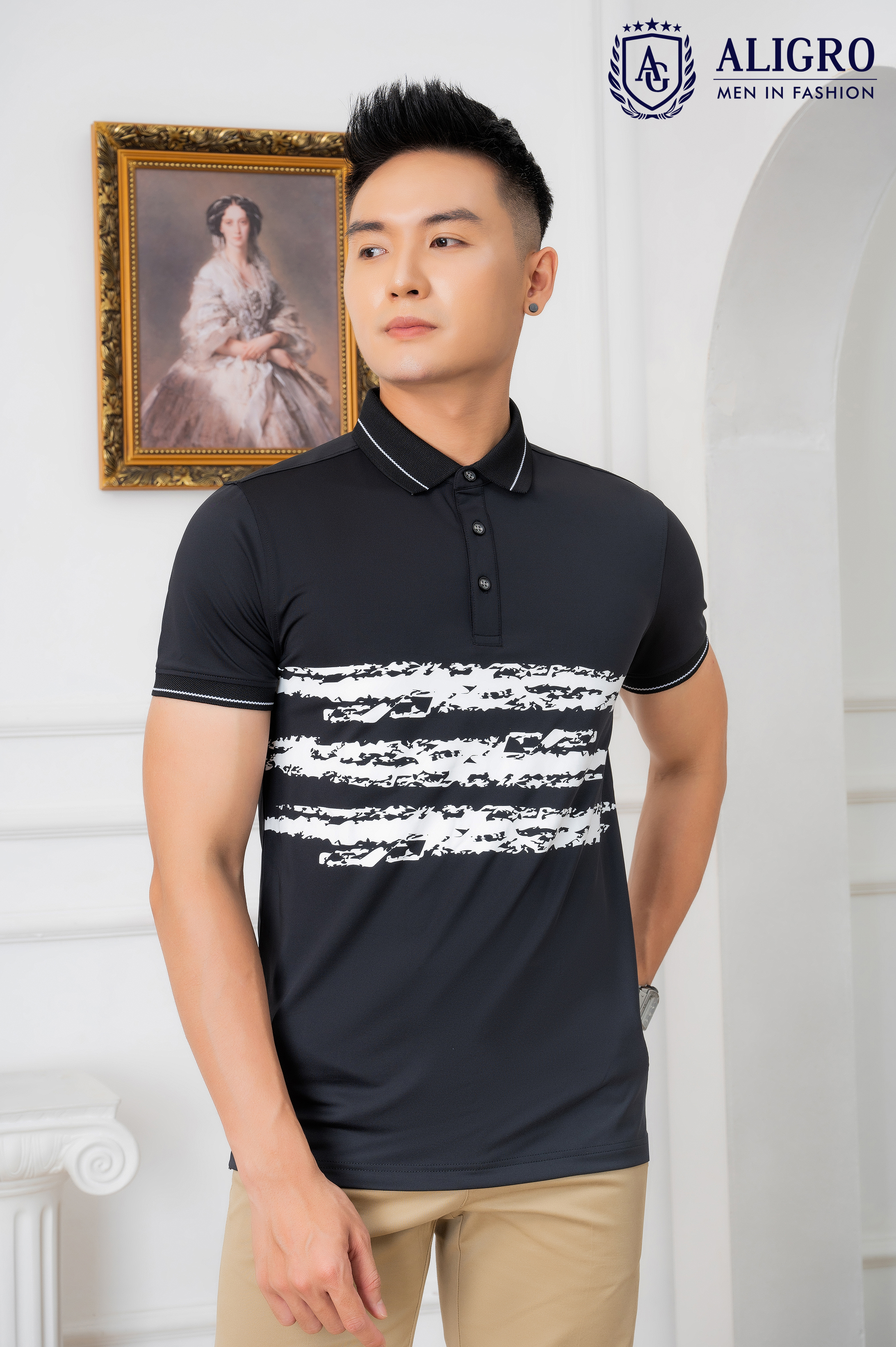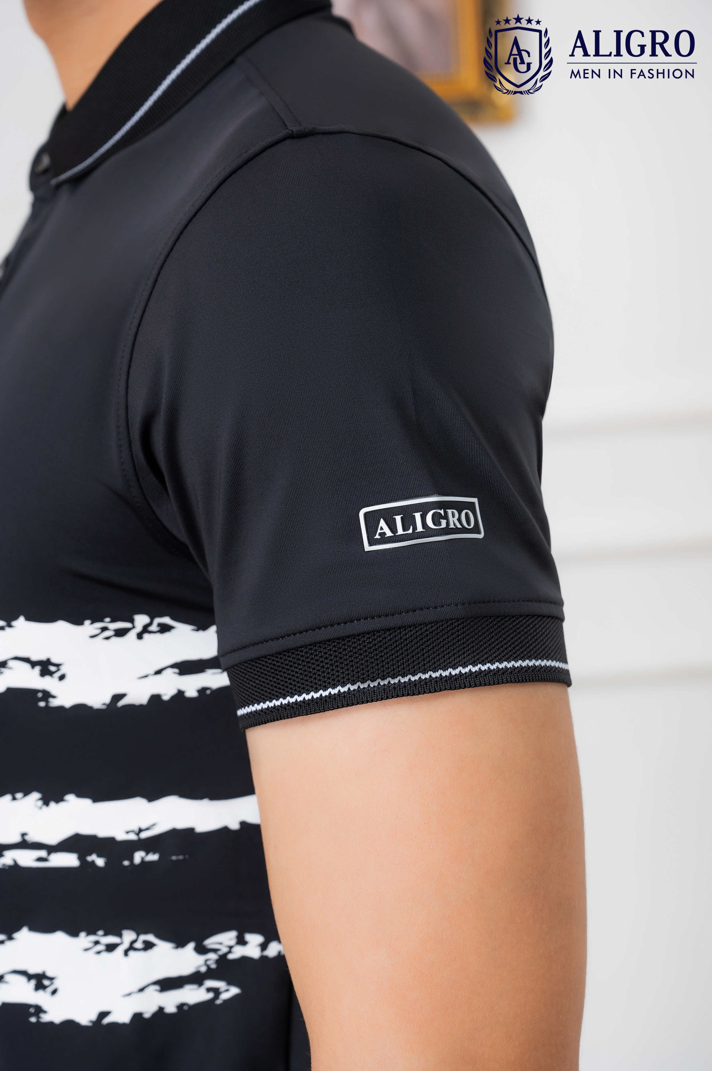 ✨Áo Polo đen phối kẻ ngang Aligro ALGPLO73