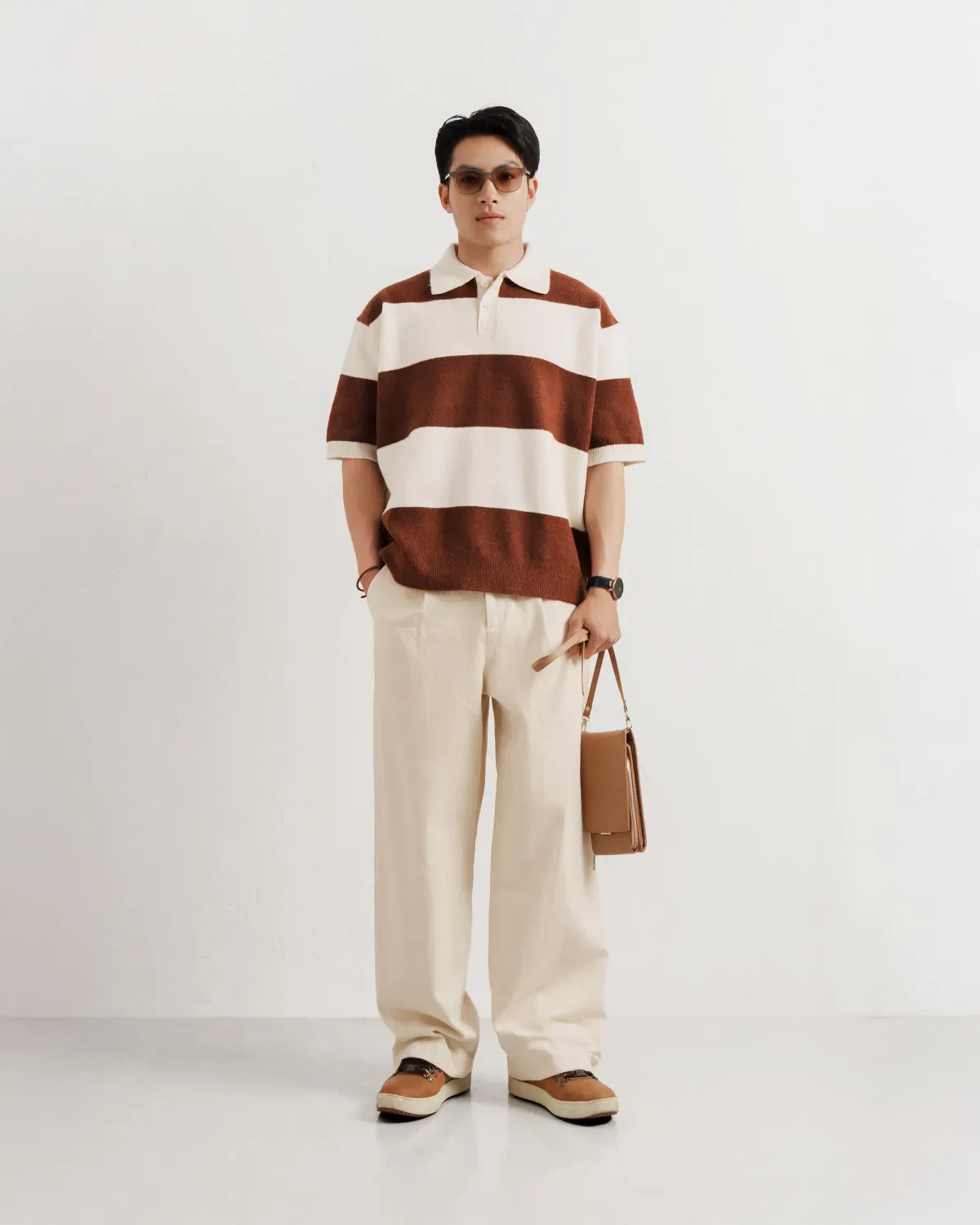 Áo polo dệt kim tay ngắn nam kẻ sọc mang phong cách trẻ trung, hiện đại với thiết kế kẻ sọc nổi bật. Kiểu dáng cổ bẻ cổ điển kết hợp tay ngắn thoải mái, phù hợp cho cả đi làm lẫn đi chơi.