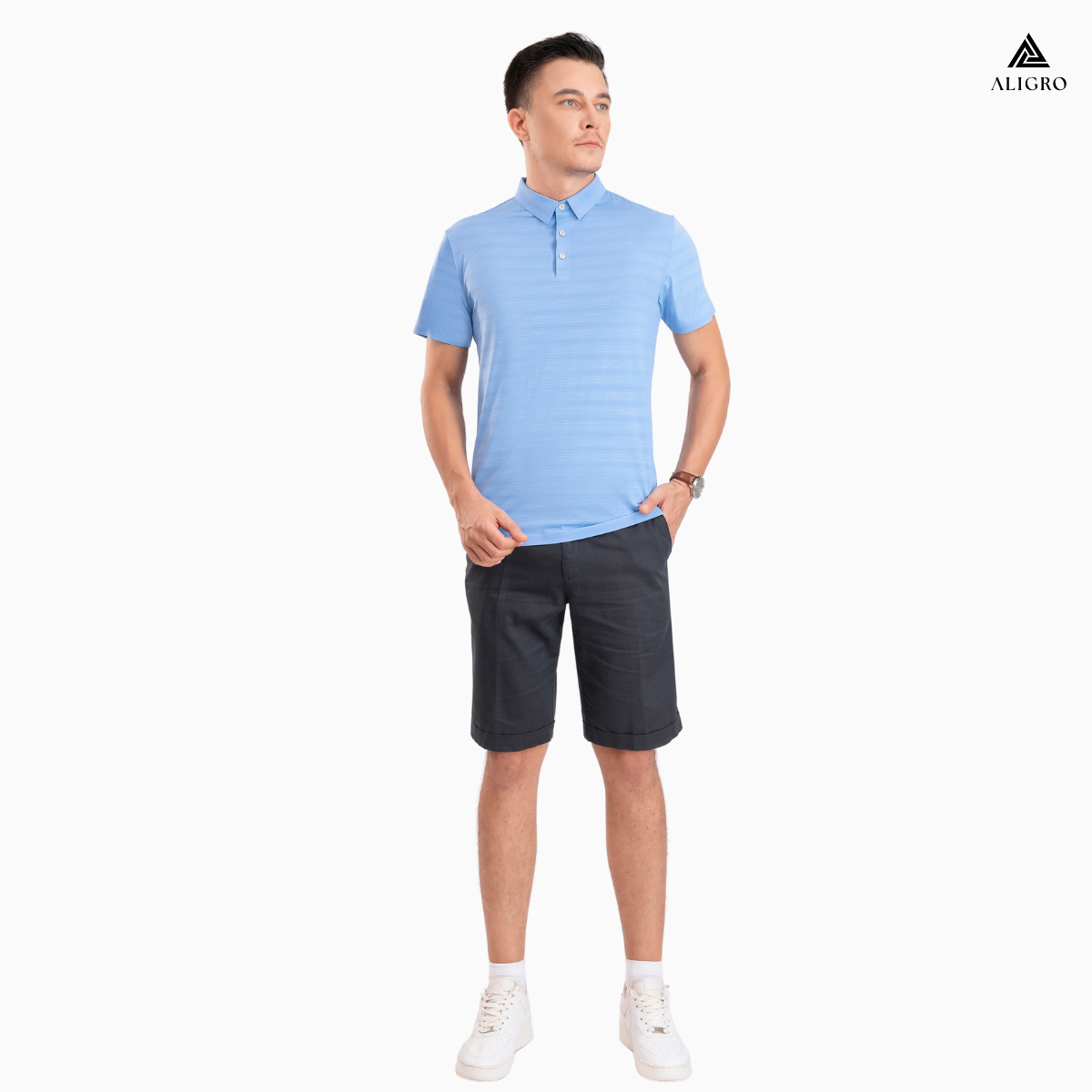 ✨Áo polo golf nam ngắn tay ALIGRO chất vải coolmax kẻ ngang màu xanh blue năng động ALGPLO117
