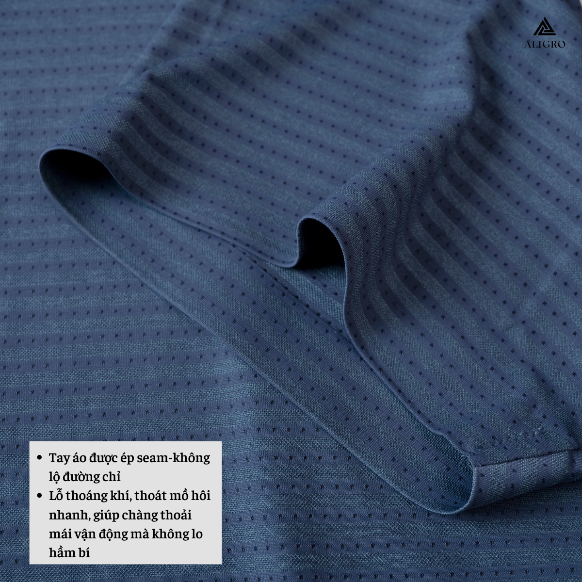 ✨Áo polo golf nam ngắn tay ALIGRO chất vải coolmax màu xanh dệt kẻ ngang năng động ALGPLO119