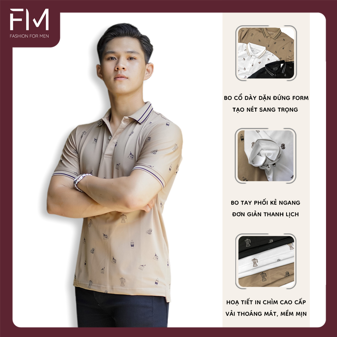 ✨Áo polo nam ngắn tay, chất thun poly cực mát, co giãn tốt, họa tiết bo phối đường kẻ lạ mắt - FORMENSHOP - FMPS193