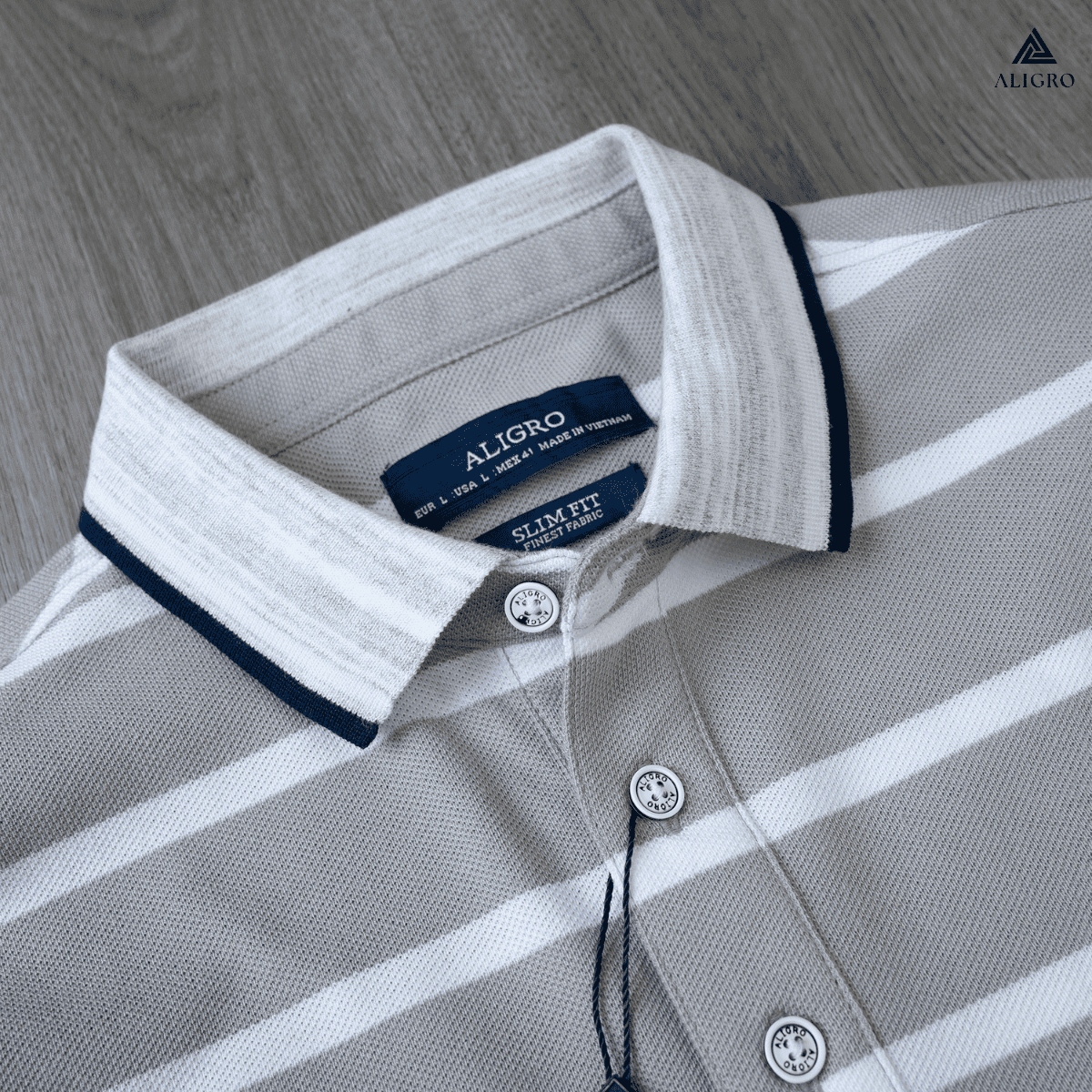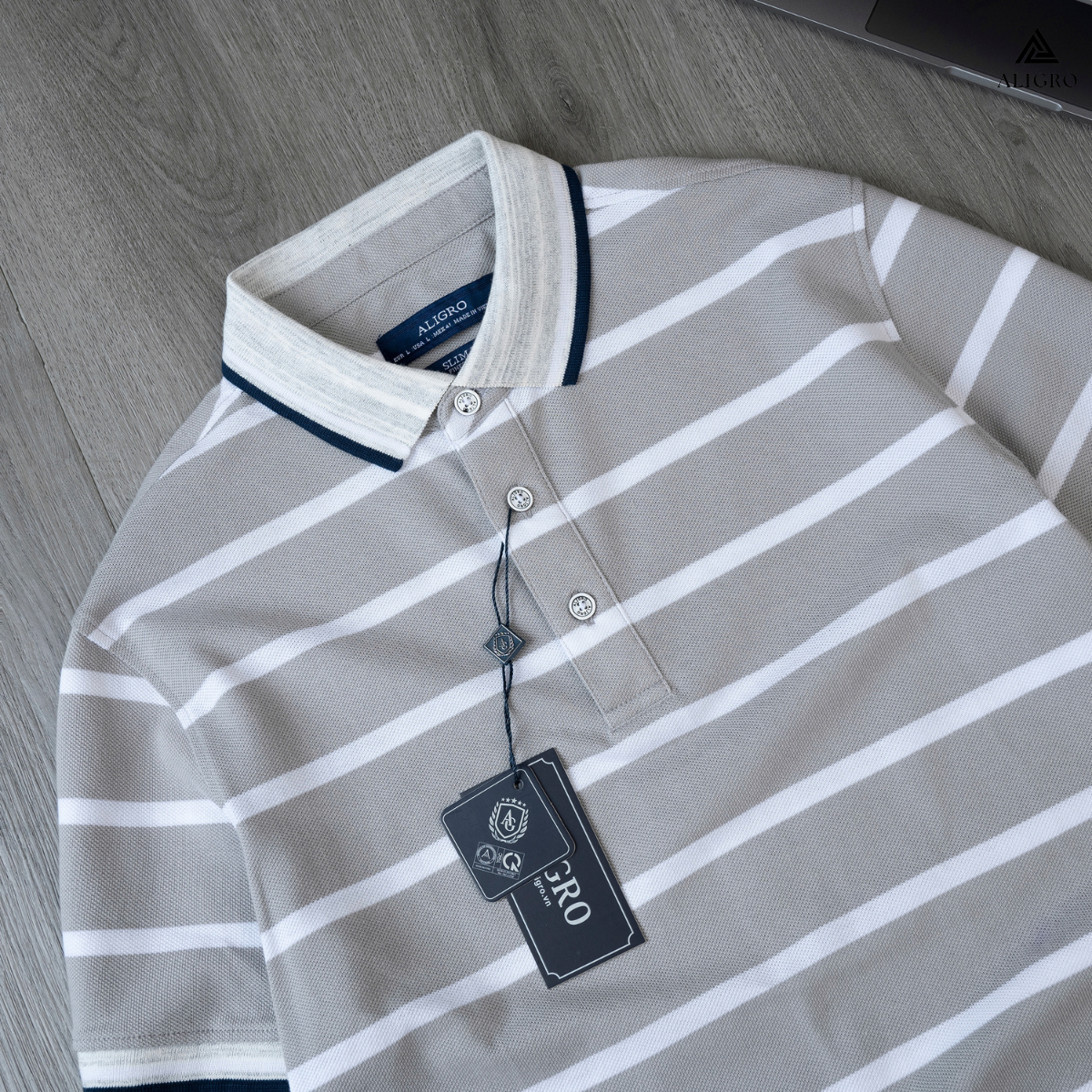✨Áo Polo nam ngắn tay kẻ ngang ghi-trắng ALGPLO89